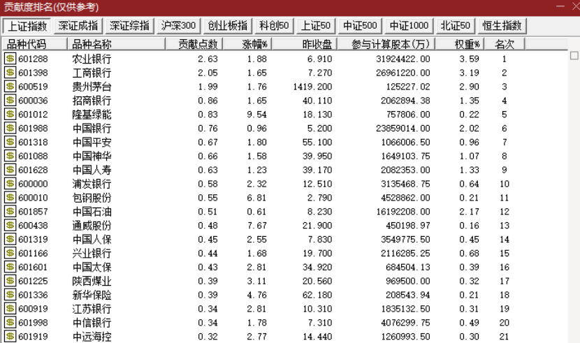与此同时,“老登”股成为大盘的支撑。农业银行、工商银行、贵州茅台、招商银行、中国银行、中国平安、中国神华等股票成为上证指数上涨最大的贡献来源。