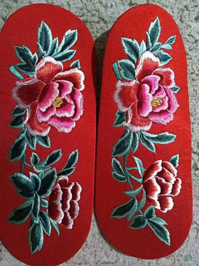 扈闯锋是土生土长的庆阳环县人,自幼受母亲影响,她对刺绣怀有着深深的热爱。闲时,总喜欢拿起针线,绣些小物件。那些时光,成了她童年最温暖的记忆——母亲的手指仿佛有魔力,普通的布料上,牡丹在枕顶绽放,虎头鞋栩栩如生。这美妙的画面,在她心中深深埋下了技艺的种子。她回忆,儿时因偷学刺绣常扎破手指,却从未喊疼。从最初歪歪扭扭的线条,到后来能独立绣出一幅完整的“鱼戏莲”鞋垫,少女时代的碎布片,已悄然孕育着非遗传承的希望。2006年从环县嫁到华亭山村后,生活重心成了灶台与绣绷。白天,忙于农活和家务;深夜,常在油灯下,把对美好生活的所有憧憬,密密缝进一个个荷包、一双双鞋垫的纹样里。
