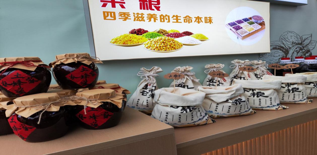 东华镇蜂蜜与杂粮面展台前,满是自然淳朴的气息,刚一亮相便成了展会里的“健康焦点”。蜂蜜展区内,陶罐内琥珀色的洋槐蜜澄澈透亮,木勺轻轻搅动,细密的泡沫久久不散。隔壁的杂粮面展区,袋装的荞麦面、玉米面、玉米糁等整齐排列,面袋印着手写的“五谷杂粮”字样,香甜的蜂蜜香搭配健康的杂粮,引得观众纷纷驻足。