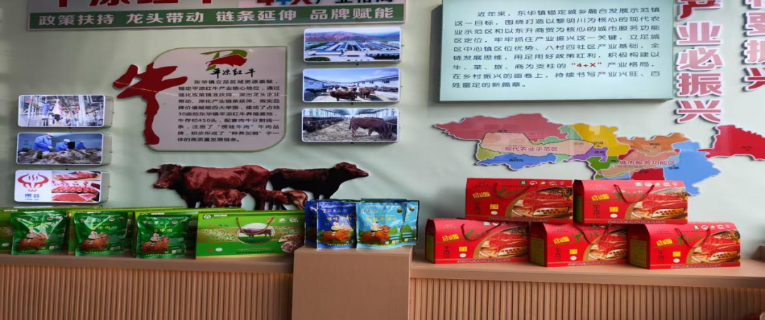 以“愣娃”为名的牛肉展品,藏着东华镇红牛产业的发展密码。展台上,既有适合家庭烹饪的分割冷鲜肉,也有便携即食的熟牛肉。工作人员通过图文展板详解“传统腌卤工艺+现代无菌加工”流程,并推出礼盒定制服务,“从养殖基地到餐桌全程可控,这是‘愣娃牛肉’打动市场的底气”。
