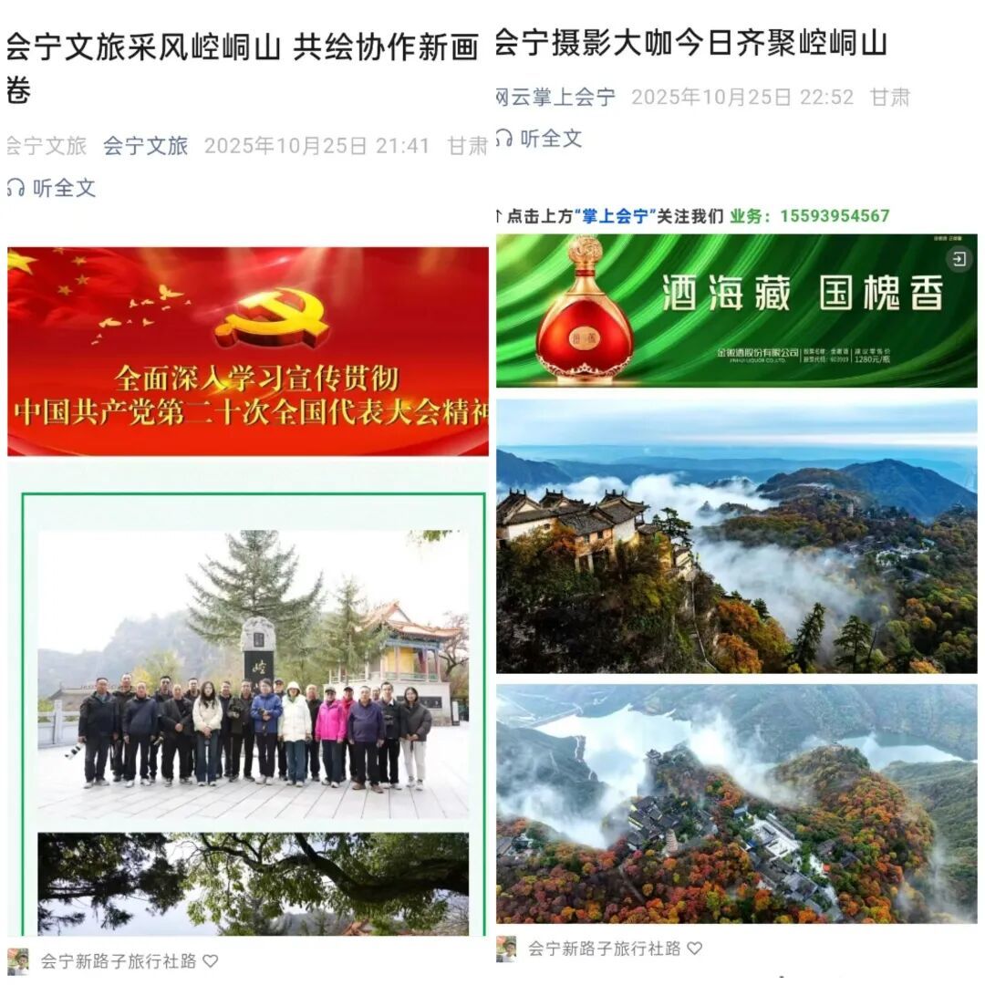 活动开展有声有色。一是开展孝老爱亲传承美德。推出重阳节“登高敬重阳·携亲享秋光”主题活动,以“免门票”的形式向全社会发出诚挚邀请。同时向渠道商积极发布优惠政策并设计一日游精品线路,为老年游客打造暖心登高赏秋体验。二是氛围营造及时有效。依托景区红叶季的特点,在最佳观景和打卡点设立提示牌,在朝天六门区域设立展现崆峒山景色特点的诗词文化景观带,丰富游客体验,引导游客驻足留念并宣发。