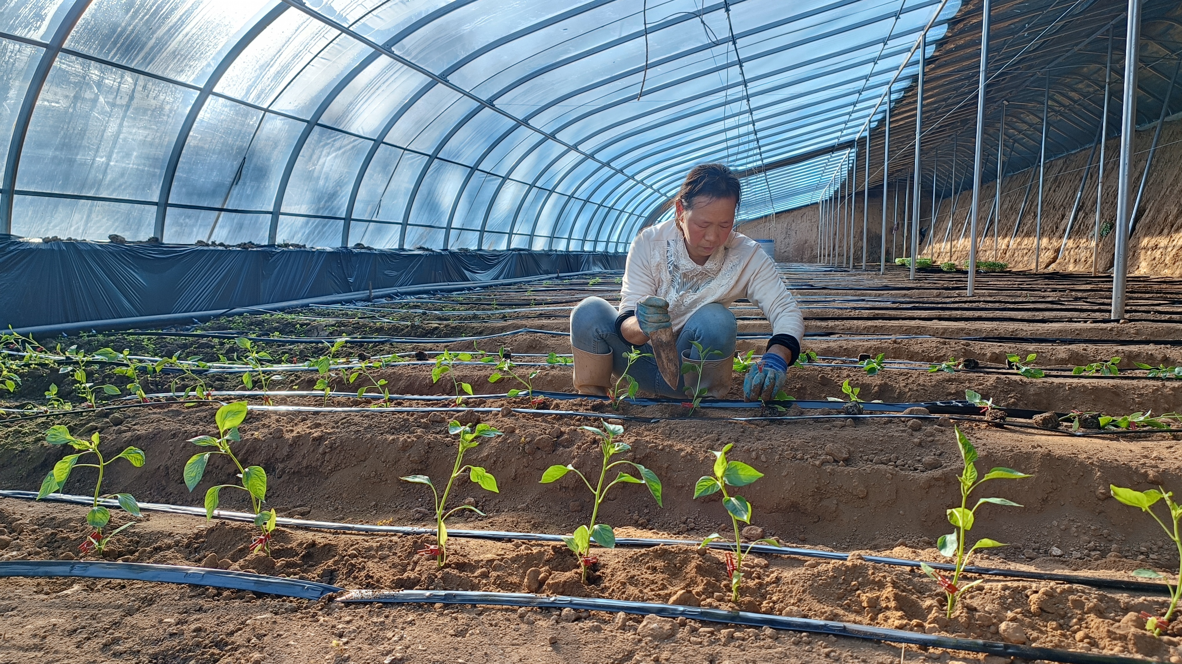 在水泉村的蔬菜大棚里,村民们两人一组、三人一队,动作娴熟地将翠绿的辣椒苗移栽到翻整一新的田垄上。他们默契配合,弯腰、栽苗、施肥,一系列流程行云流水,为冬日的乡村注入了满满的活力与希望。“今年承包了19个大棚,主要种植辣椒,选的品种是华美105、109和奥龙1818。目前长势很好,预计元月份左右就能集中上市,销路我们一点都不愁。”蔬菜大棚经营者李宏飞信心满满的说。