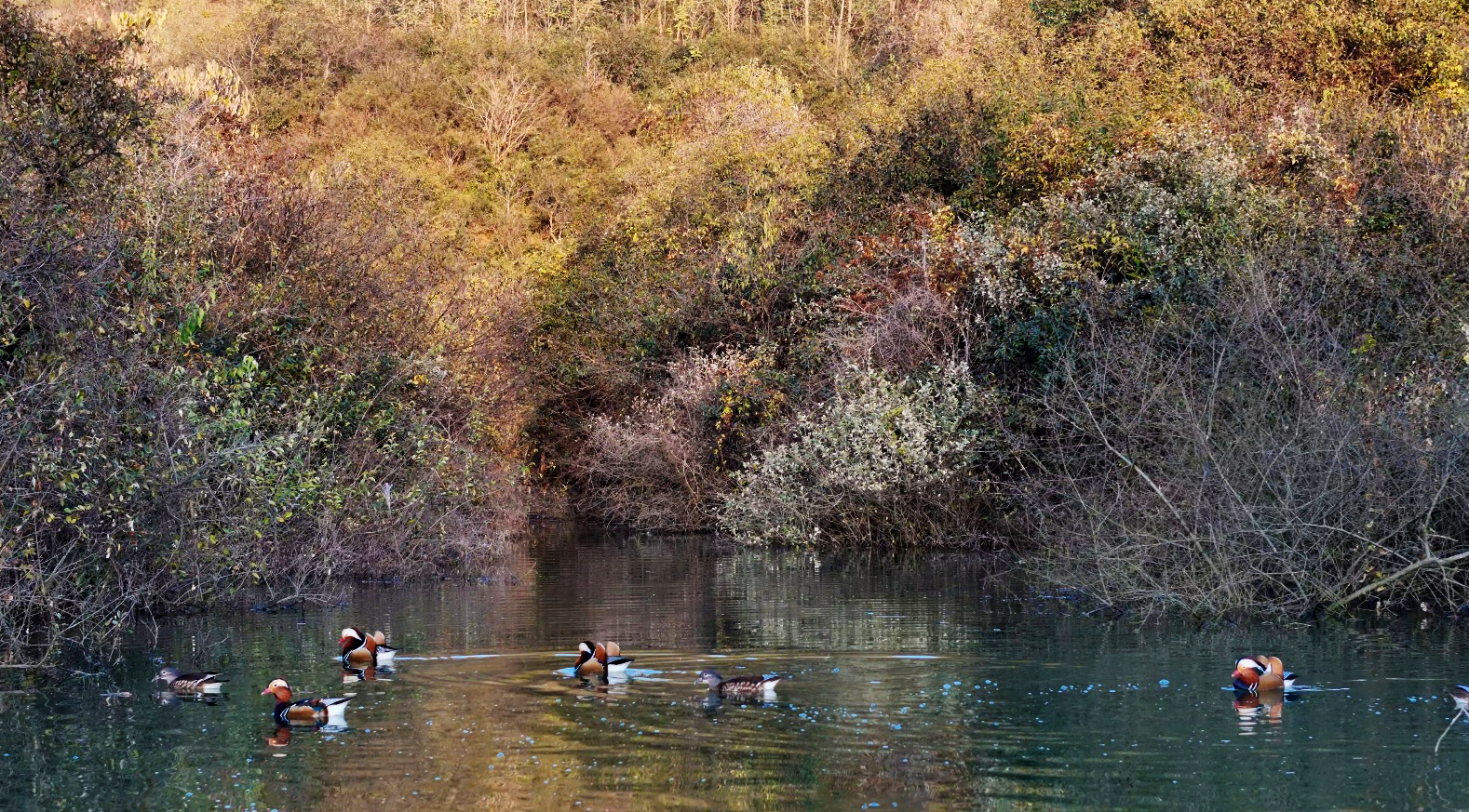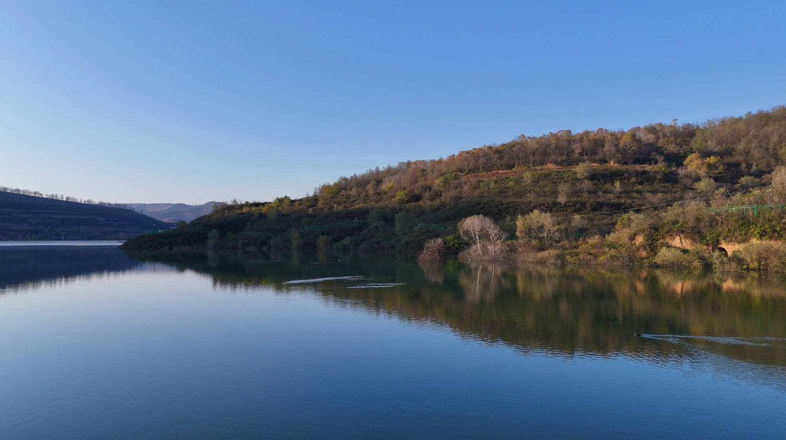 深秋的灵台县邓家川水库,展现出一幅瑰丽景致。群山披彩,碧水如镜,金黄与赭红的林影在水中交织出斑斓倒影。鸳鸯嬉戏,清波微漾,为这片静谧山水注入了盎然生机。(记者:马文军)