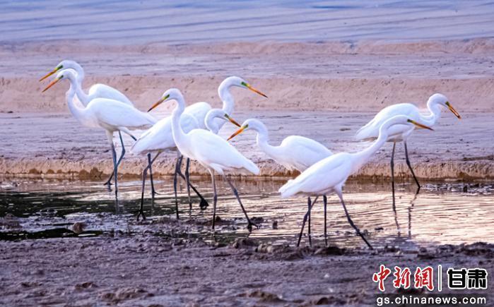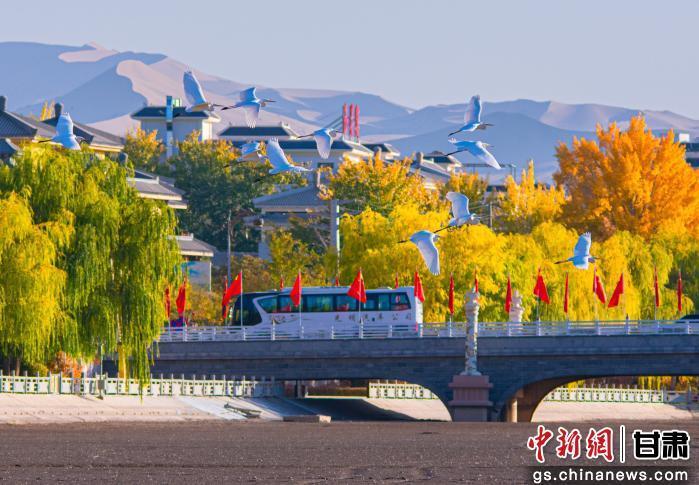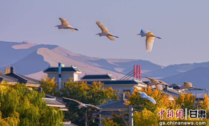 原标题:金秋敦煌党河风情线白鹭翩跹