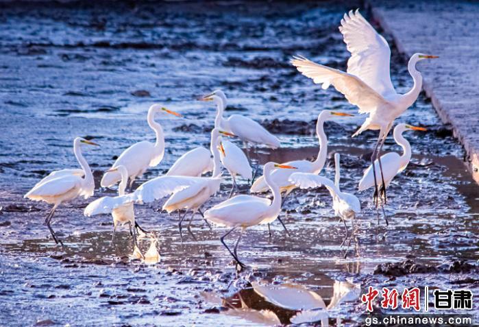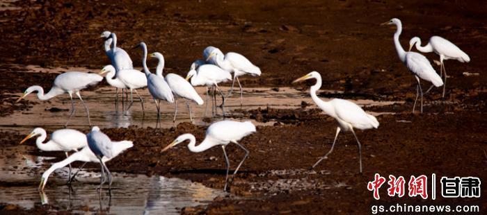 10月30日,大批白鹭在敦煌党河风情线上飞舞、觅食。白鹭的到来,不仅为敦煌的秋天增添了生机与活力,更是当地生态保护成果的生动见证。(王斌银 周玉玲)