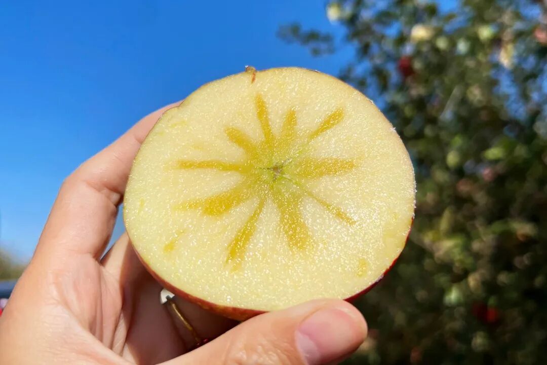摘下一颗,手感沉实。果皮上蒙着一层自然的果霜——那是新鲜的印记。咬下一口,“咔嚓”一声,声音清脆悦耳。果肉应声绽开,清甜的汁水瞬间充盈唇齿。那不是单调的甜,而是带着山风与阳光的自然清甜。
