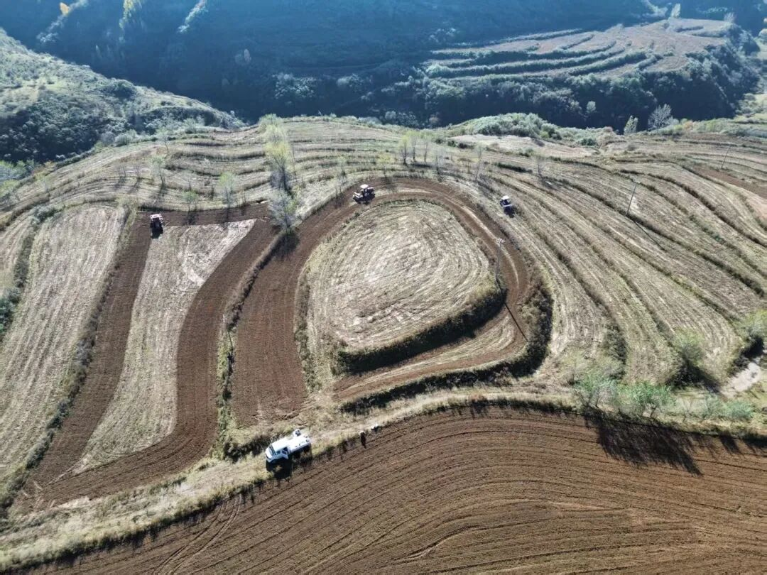 原标题:沃野新犁勤作序 麦播千亩守粮安——华亭河西镇冬小麦播种掀热潮