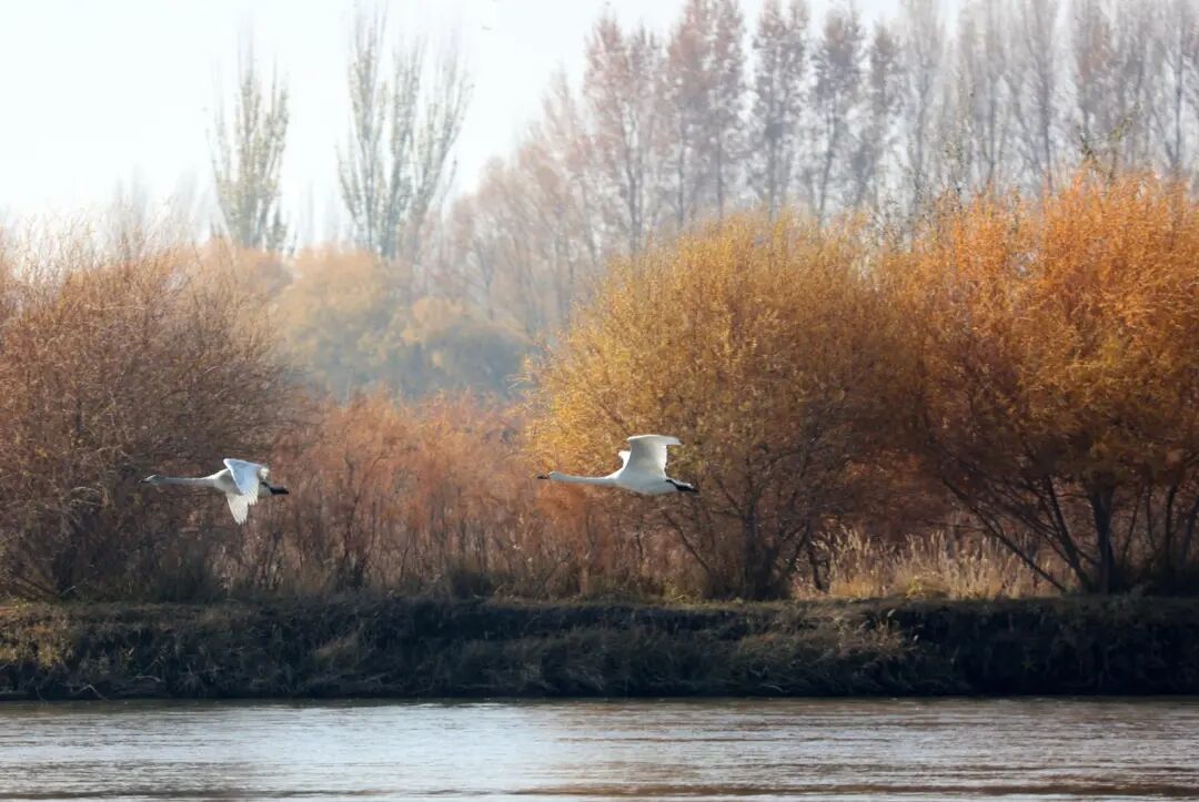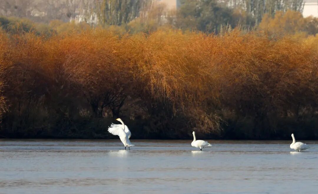 近年来,高台县坚持生态优先、保护为主的原则,通过实施退耕还湿、植被恢复、生态补水、围栏封育等一系列生态修复工程,持续加大湿地保护与治理力度,有效遏制了湿地面积萎缩的趋势。每年迁徙季节,到这里栖息的大天鹅数量稳定在300只以上,且近年来种群规模持续保持高位。这些大天鹅来自西伯利亚等北方繁殖地,每年10月初陆续抵达,直至次年3月再集群北归,在黑河湿地停留近半年之久,使这里成为候鸟“乐园”。(张掖市融媒体中心记者 张渊 刘秉刚 王静)