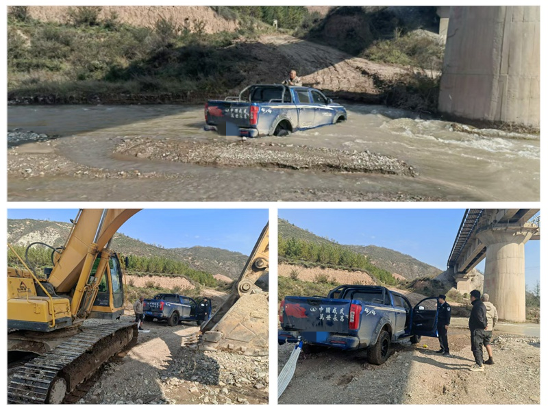 当日上午11时许,平凉市公安局崆峒分局安国派出所接到报警,辖区某河段有车辆误开进河里无法出来,司机被困车内急需救助。接到报警后,值班民警立即出发,考虑到现场情况不明,且近期雨水较多、河流湍急,民警一边驱车赶路,一边通过电话与报警人保持实时沟通,反复确认车辆位置与报警人自身安全情况。抵达现场后发现,车辆半个车身已被河水淹没,车内王先生因恐慌不知所措,民警一边大声安抚王先生情绪,叮嘱其保持冷静、切勿慌乱,一边商定救援措施,考虑到水流较深且急,一般车辆无法将被困车辆拖出,民警遂联系附近大型挖掘机进行协助。经过1个多小时的努力,落水车辆被成功拖离,被困人员也成功转移至河边安全区域。