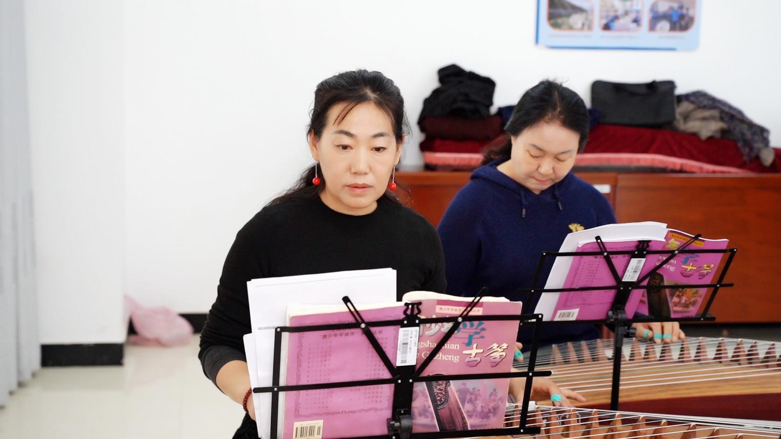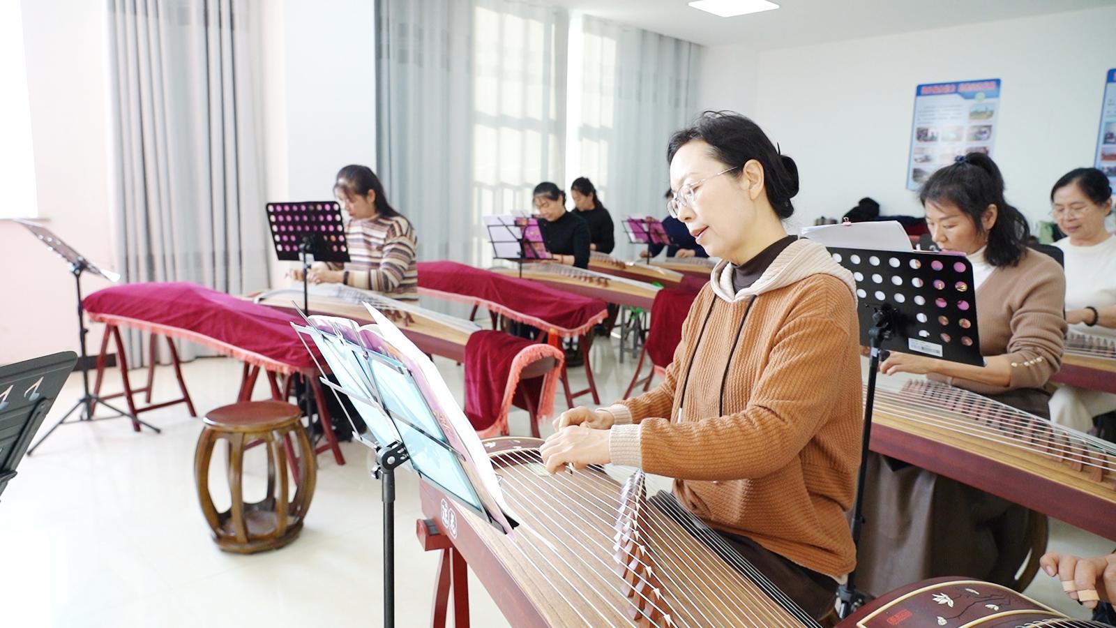 除了二胡,学校还开设了古筝、舞蹈、书法等多种课程,让老年朋友在家门口就能享受到“老有所学”的充实与乐趣。今年51岁的常占玲兴趣爱好广泛,为了丰富自己的退休生活,早早就报名了古筝班,享受学习的乐趣。