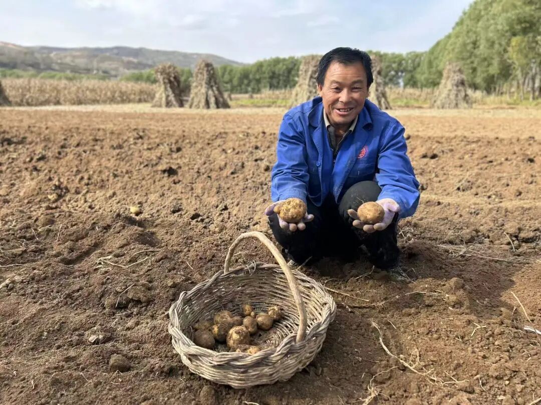 田垄间,随处可见忙碌的身影落秧、刨土豆,翻开松软的土瓤,沉甸甸的土豆从泥土中“探”出圆圆的脑袋,犹如串串“金蛋蛋”滚落田间,色泽鲜亮、品相优良,大家穿梭忙碌,采挖、分拣、搬运,忙得不亦乐乎。从看着土豆破土出苗到挖开泥土捧起满手的硕果,茬茬相接的劳作里满是泥土与阳光馈赠的喜悦。