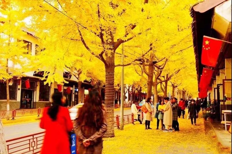 每年深秋,道路两旁高大的银杏树叶片转黄,随风摇曳,落叶铺满路面,形成一条“黄金大道”,吸引众多市民和游客前来观赏。孩子们在落叶间嬉戏,年轻人拍照打卡,老人则坐在长椅上享受阳光,整条道路洋溢着宁静与美好。