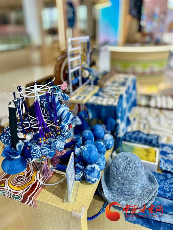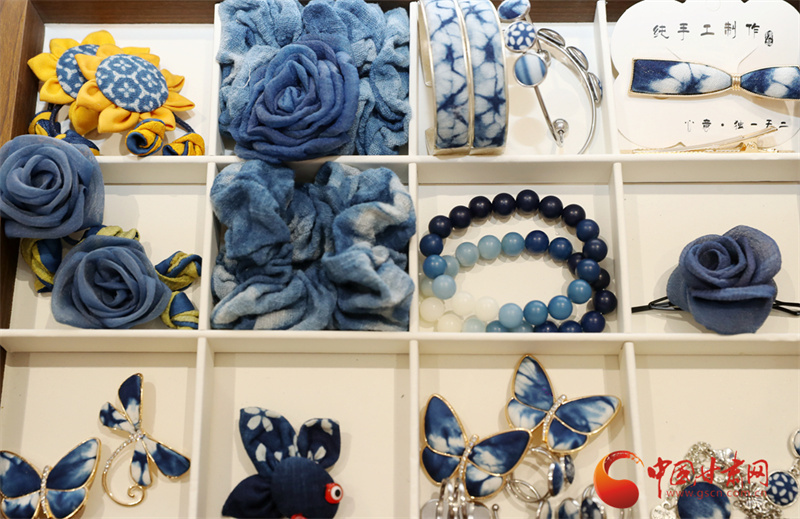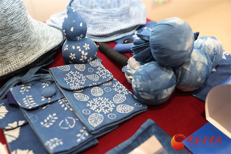 染好的布匹还要经过脱浆、清洗、阴干,最后才是拆线、整理。当一块完整的蓝印花布展现在眼前时,李梅总会轻轻抚摸布料,仿佛在与草木对话。她的工作室里,挂满了用蓝染制成的物件:桌布上印着成片的板蓝根叶,茶席边缘缀着小巧的蓝染布扣,就连她日常穿的棉麻衫,也是自己染的淡蓝色。“这些布不是冰冷的商品,是带着土地温度的生活。”李梅说,去年她在平凉古城开了一间“蓝染生活馆”,游客可以跟着她学种板蓝根、体验扎染,很多人第一次发现,原来衣服上的蓝色可以来自田野,非遗技艺能如此贴近日常。