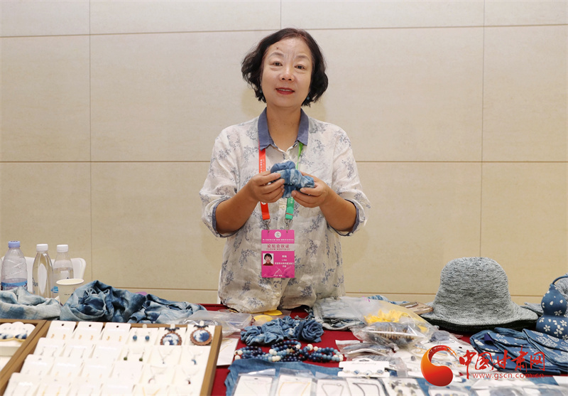 在第八届进博会的现场,甘肃馆以其独特的人文底蕴吸引了众多目光。展馆内,弧形山脉造型的背景,仿佛展现着甘肃的壮美风光,而庆阳香包、敦煌丝巾等精美展品,则如璀璨明珠,诉说着甘肃的文化魅力。就在这其中,来自平凉的古法蓝染技艺展台格外引人注目,一件件蓝染作品散发着独特的草本气息,向世界展示着非遗的独特魅力,而这些作品的创作者,正是平凉蓝染技艺的市级非遗传承人李梅。