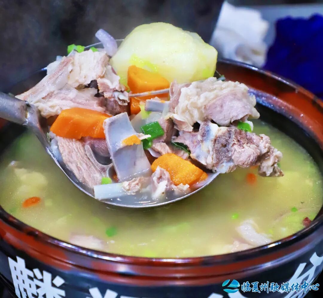 菜里加入了当归、党参等多种中药,并且每份盆盆肉中都有羊肋条、脖子等羊的各个部位,吃起来口感丰富,汤也更有营养价值。”