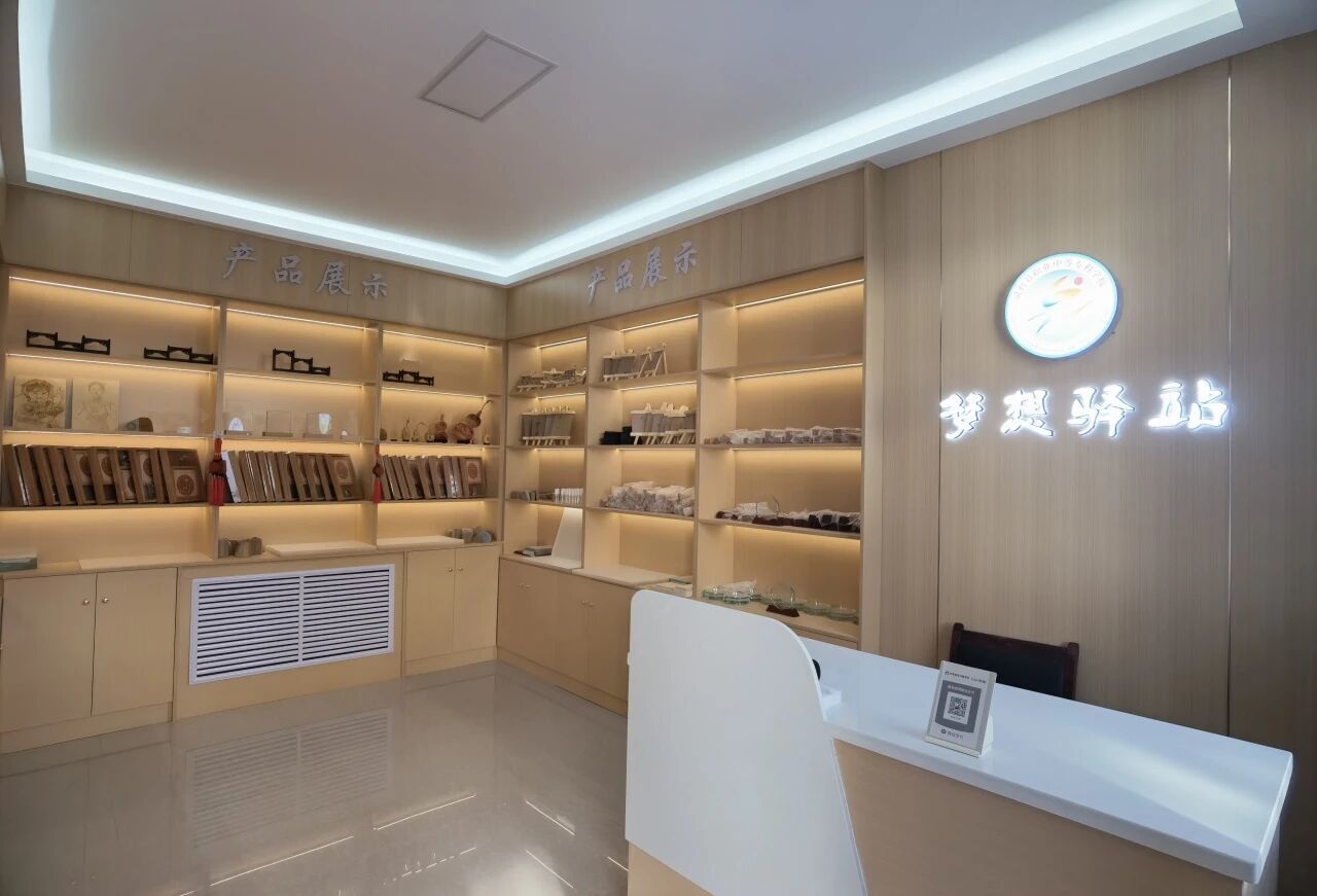 职中“梦想驿站”以其鲜明的科技感与创造性,成为青年创客与梦想家的实践基地。紧紧围绕“科创体验、个性化定制服务”,构建起“文创产品研发、现代科技实践、未来职业探索”的三位一体生态。它不只是一个店铺,更是一个完整的创意生态系统,以“设计—生产—销售”的全流程,打造出独具特色的产学研销一体化模式。在这里,灵感不再是空想,而是可以触摸的实物。