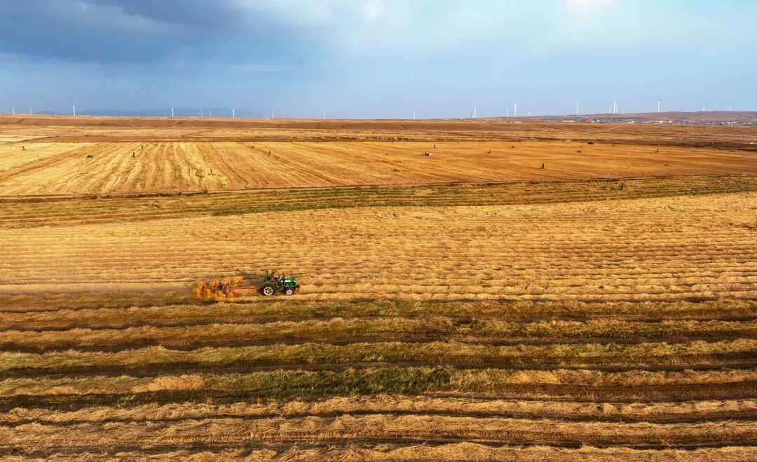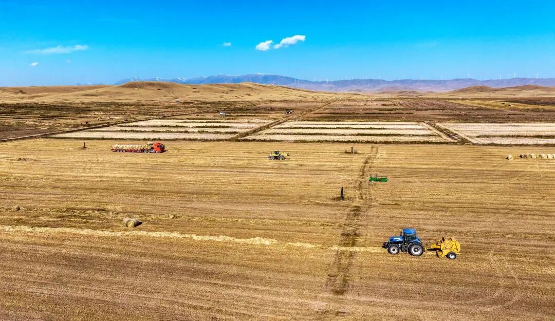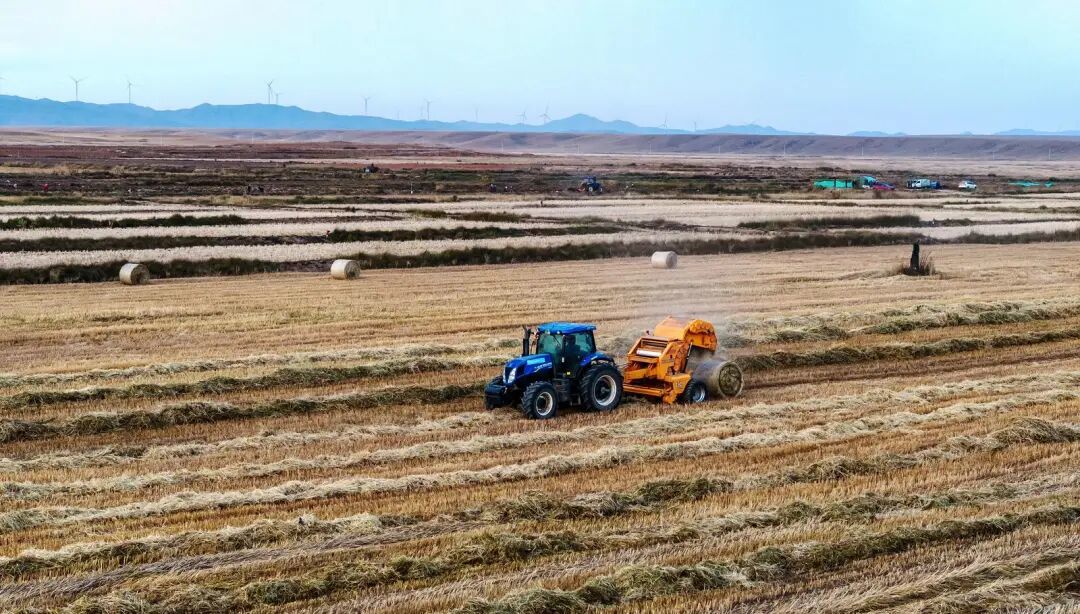 近日,天祝县祁连山南麓的泰润民农机服务专业合作社燕麦种植基地内,大型机械穿梭作业,搂草、打包、装车、运输有条不紊,田间地头一派繁忙有序的丰收景象。