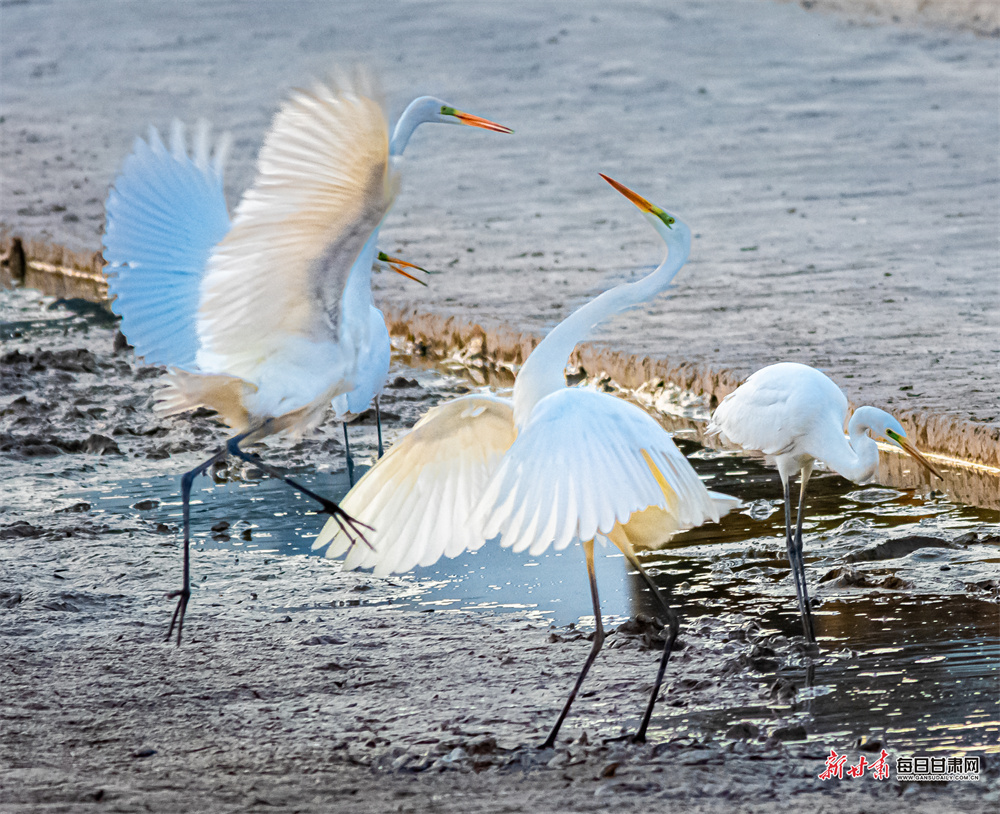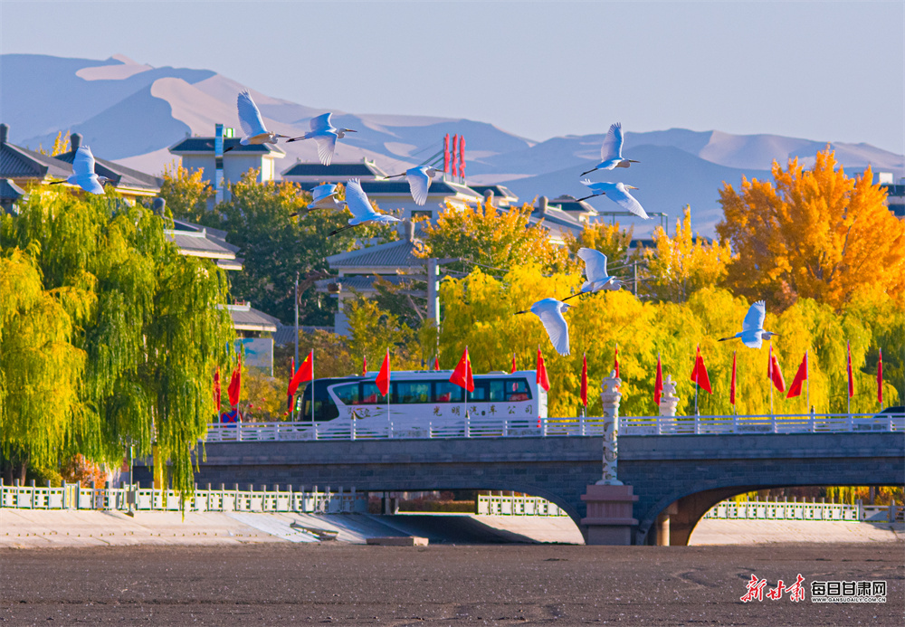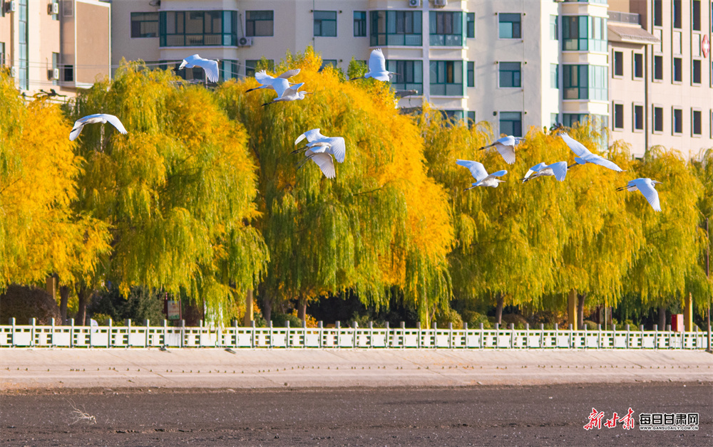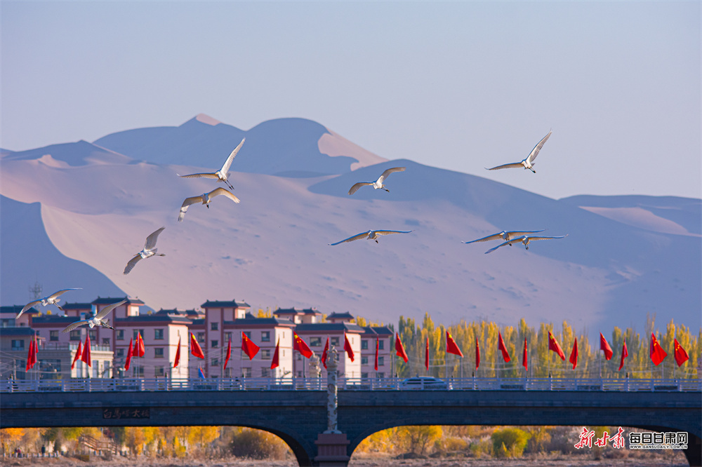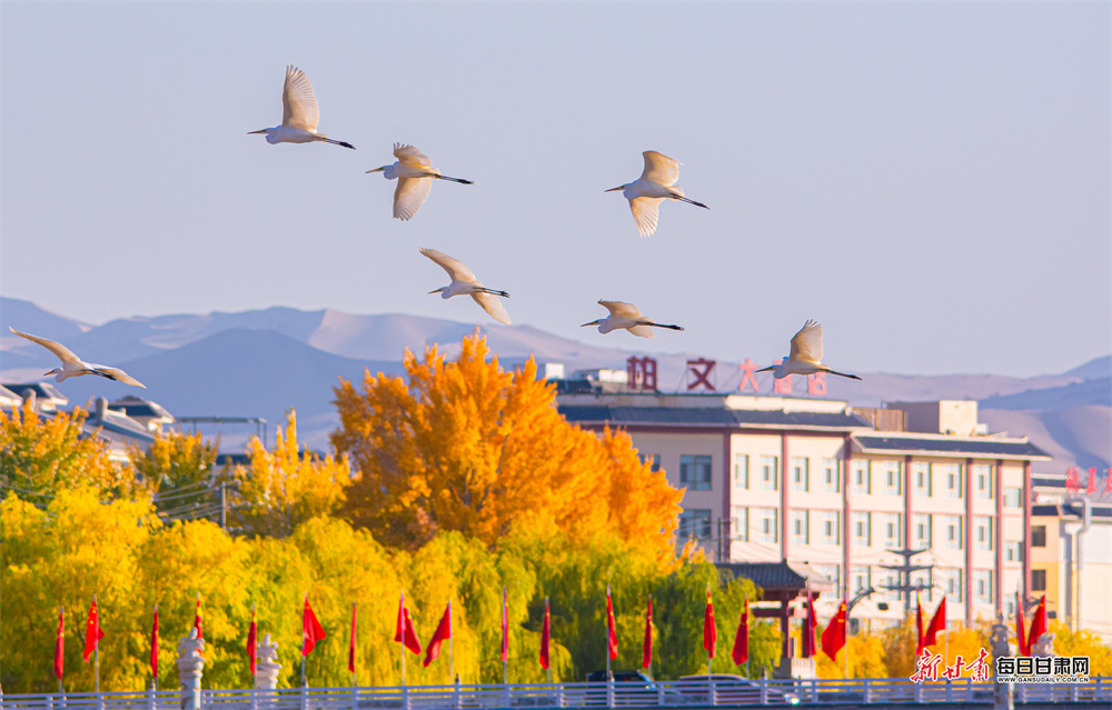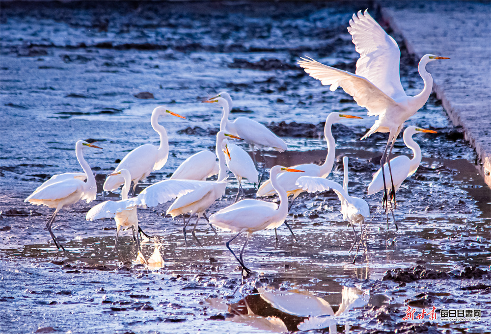 冬初,阳光轻覆敦煌大地,党河——这条敦煌人的“母亲河”,因丰美水草与成群小鱼,成了白鹭栖息觅食的绝佳去处。近年来,随着敦煌生态持续改善,越来越多候鸟在此停歇,白鹭便是其中最耀眼的“客人”,它们的到来,既为秋日增添生机,更是生态保护成果的生动见证。