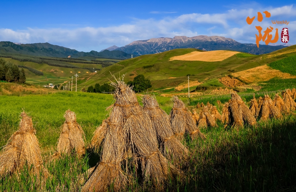目之所及,金黄的麦捆与绿色相互映衬,用最灿烂最饱满的颜色诠释这片土地的丰收与希望。而远处连绵起伏的山峦,更是为这幅画卷增添了几分雄浑而壮阔。