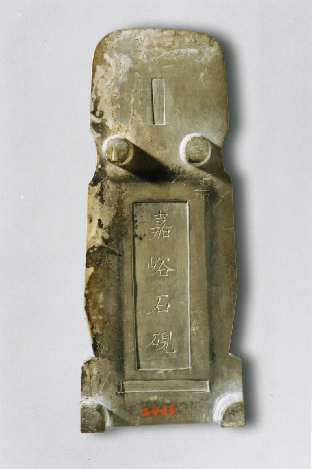 不过,唐宋之后,端砚、歙砚、洮砚等崛起,嘉峪砚逐渐式微。直到20世纪50年代,考古学家在明代甘肃名臣彭泽的墓中发现了一方刻有“嘉峪石砚”铭文的砚台,嘉峪石砚才重新走进人们的视野。这方石砚长18.8厘米,宽6.5-7.8厘米,由整块嘉峪石制成,青灰色,整体轮廓雕作七弦琴状。砚额阴刻琴弦七道,额下砚池椭圆深腹,池岸有凸边。背部有四短足,两圆两方,并雕琢出长方形款地,阴刻楷书“嘉峪石砚”四字铭,石质细润,花纹美观,为砚之佳品,应是墓主人彭泽珍视之物。