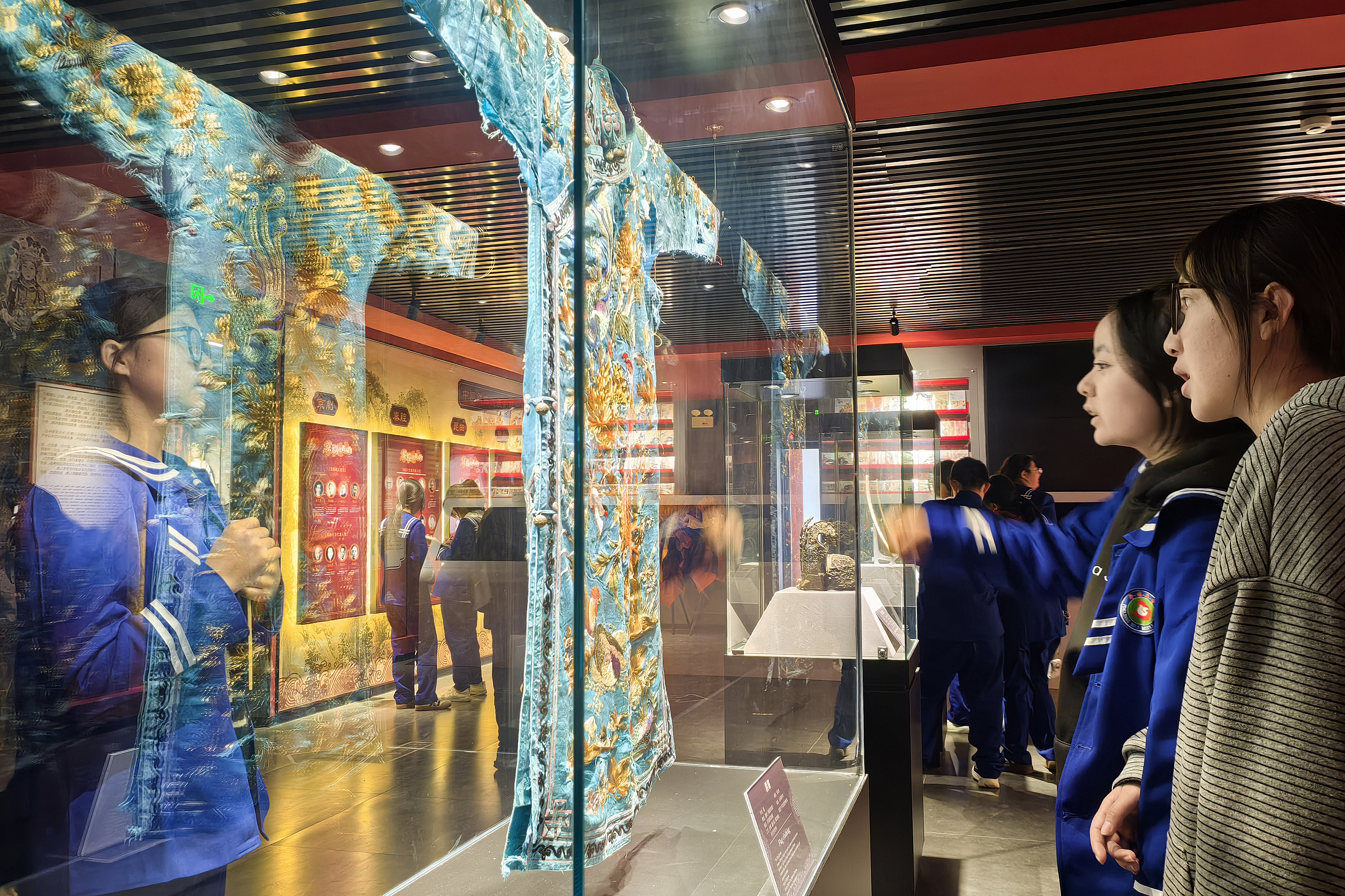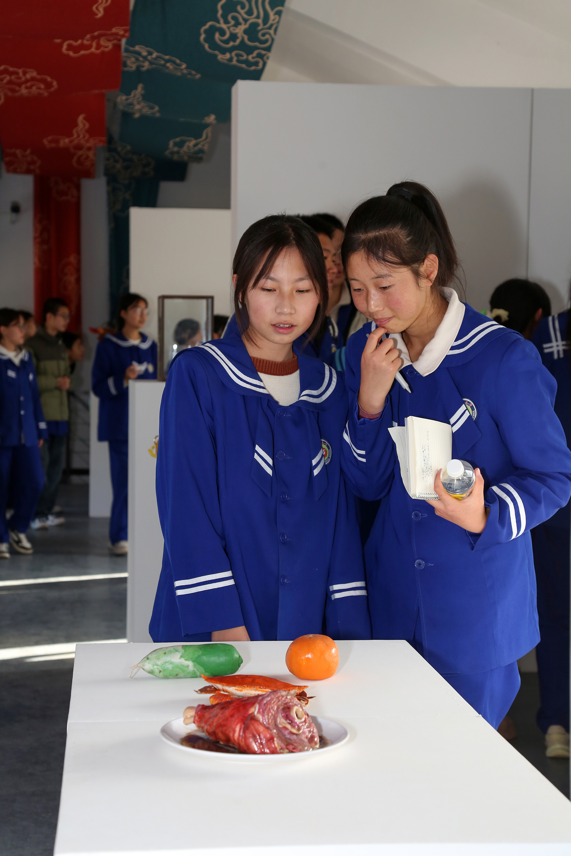 展厅内,一件件精美的非遗作品让师生们目不暇接。近两米的巨幅剪纸线条流畅、神态各异的泥塑和面塑作品、有着上百年历史的制作精细的戏曲服饰和皮影……细腻、精湛的传统手工艺让师生们连连拍手叫绝。师生们在每个展台前驻足观看,流连忘返,同学们或记录笔记,或拍照打卡,或交流体会,一双双好奇、求知的眼睛被丰富多彩、琳琅满目的非遗作品吸引,展厅里时不时发出阵阵惊叹声,深深地感受到了中华民族优秀传统文化的深厚底蕴和非遗文化的独特魅力。
