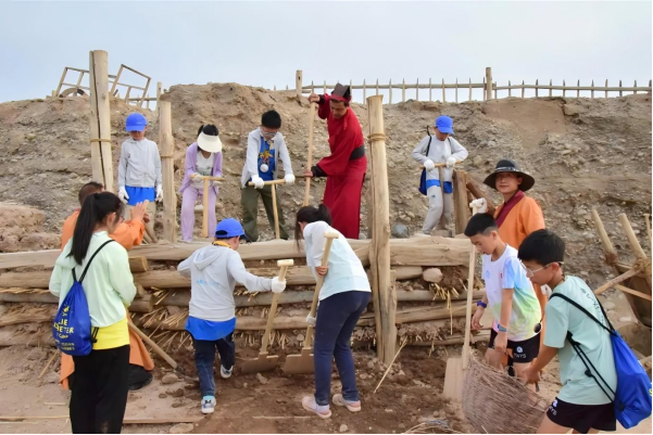 【修筑长城】使用仿汉代工艺的夯具与模具,亲身参与“夯土筑城”的环节;