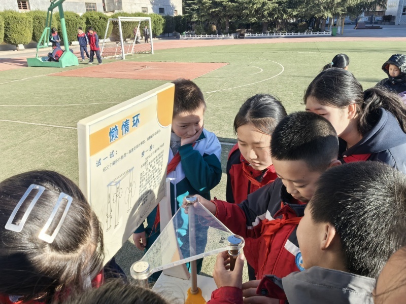 活动现场,科普大篷车搭载的互动展品整齐陈列,覆盖力学、光学、电学等多个领域。“天鹅绒触觉”“磁力传动摆”等趣味装置前,学生们排起长队,在科普志愿者的耐心引导下亲手操作——时而俯身专注观察,时而低声交流心得,在动手实践中把抽象的科学原理转化为真切感知。志愿者同步发放科普手册、定制中性笔等宣传品,让科学知识真正“触手可及”。
