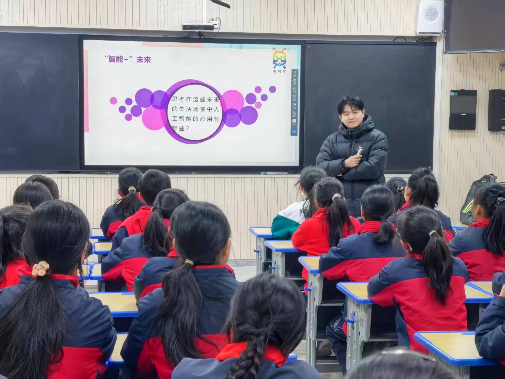 此外,奥玛客人工智能科普示范基地的编程老师带来精彩讲座,围绕人工智能本质、生活中的AI应用、发展历程及编程与AI的关联四大板块展开讲解。生动的案例、趣味的互动让同学们清晰认知AI的能力边界与多元应用场景,创新思维与计算思维得到有效培育,现场参与热情持续高涨。