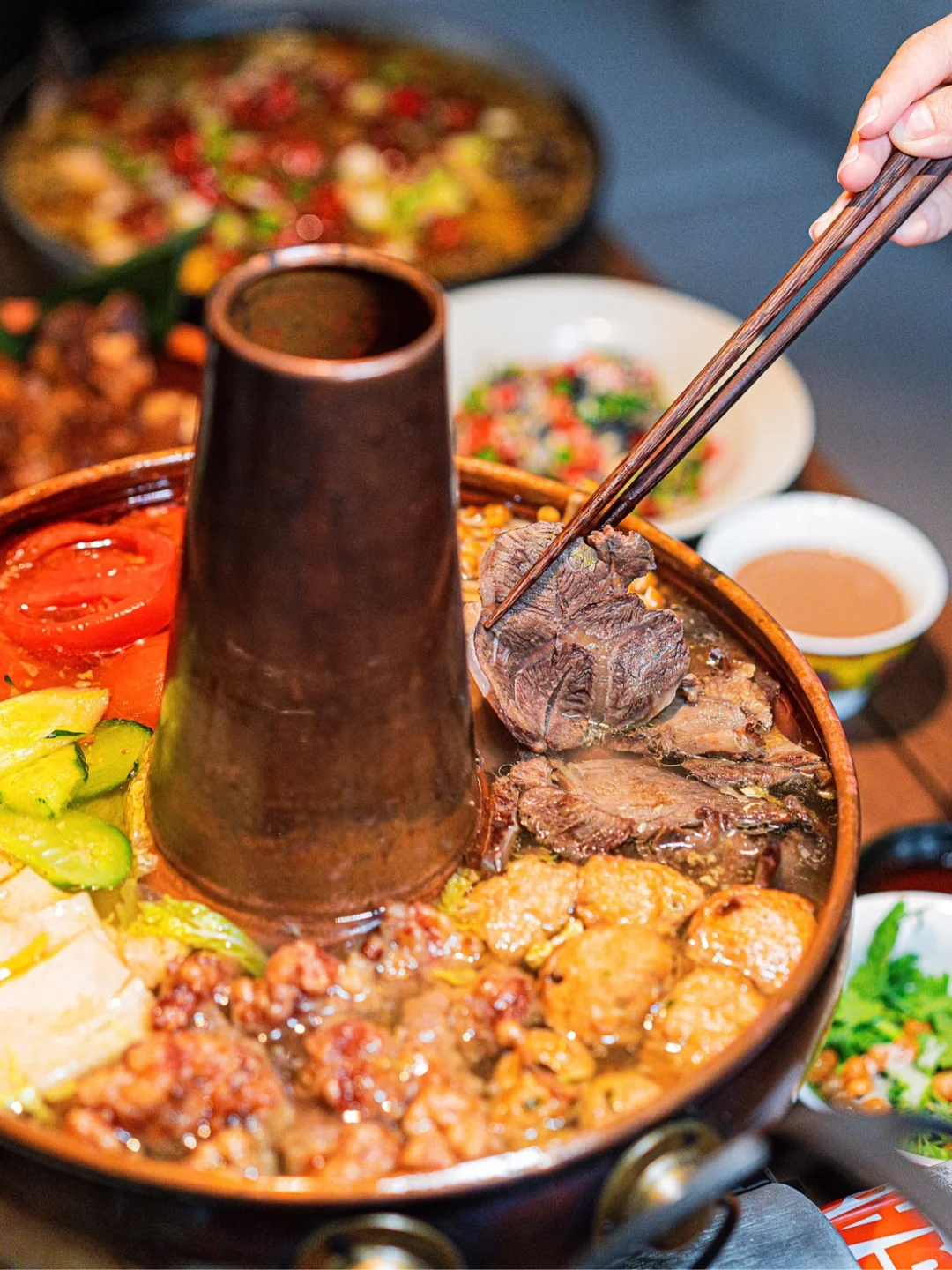 铜锅里的清汤咕嘟作响