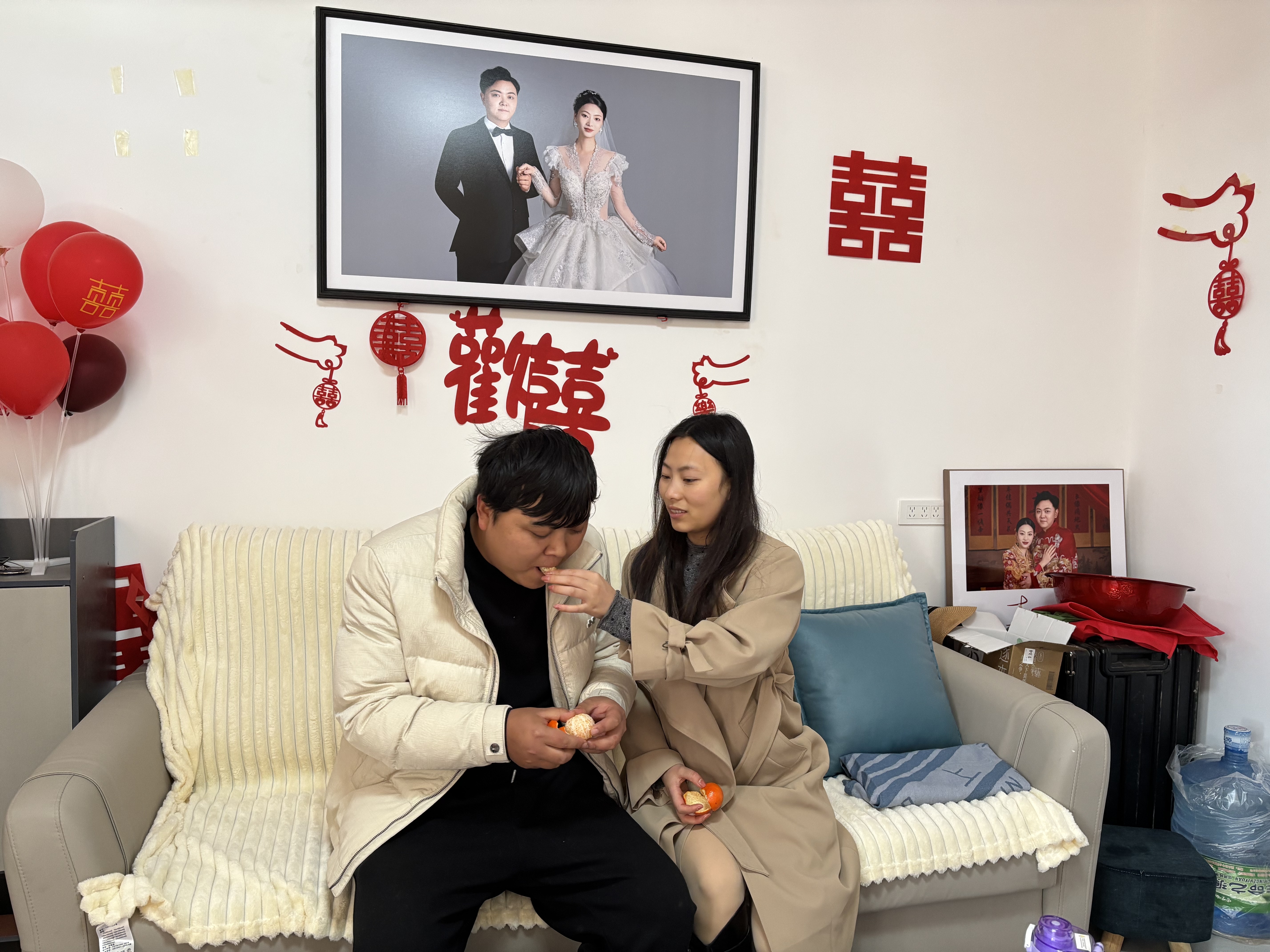 走进张小宏家中,儿子张凯的婚房里大红“囍”字点缀其间,处处洋溢着温馨与喜悦。张凯是灵台本地青年,张婷来自贵州,两人在外务工期间相识、相知、相爱。谈及婚嫁时,他们不约而同地选择了“轻彩礼、重感情”的方式,仅以2.8万元作为彩礼,既表达了对婚姻的诚意,也大大减轻了两个家庭的负担。