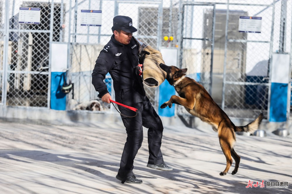 原标题:【镜观陇原】寒冬砺犬!崆峒警犬低温天气练“绝技”