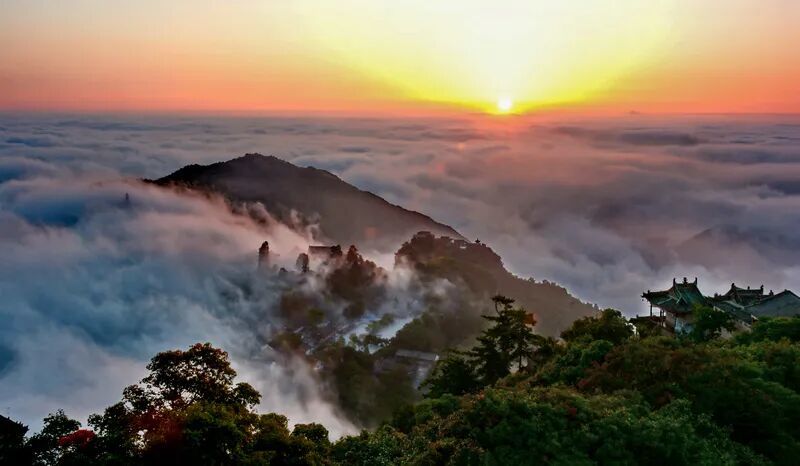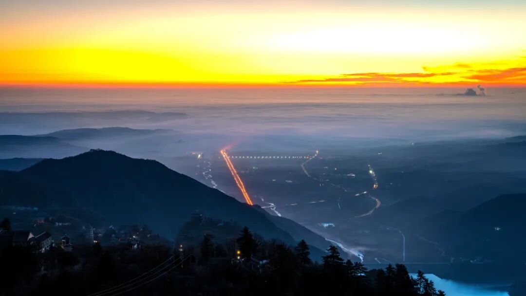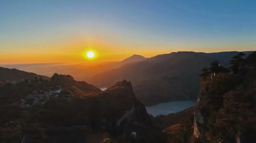 太阳跃出的一刹那,万丈光芒洒遍群山,云海与之一同璀璨,仿佛天地间所有阴霾都被这一刻的光芒驱散。