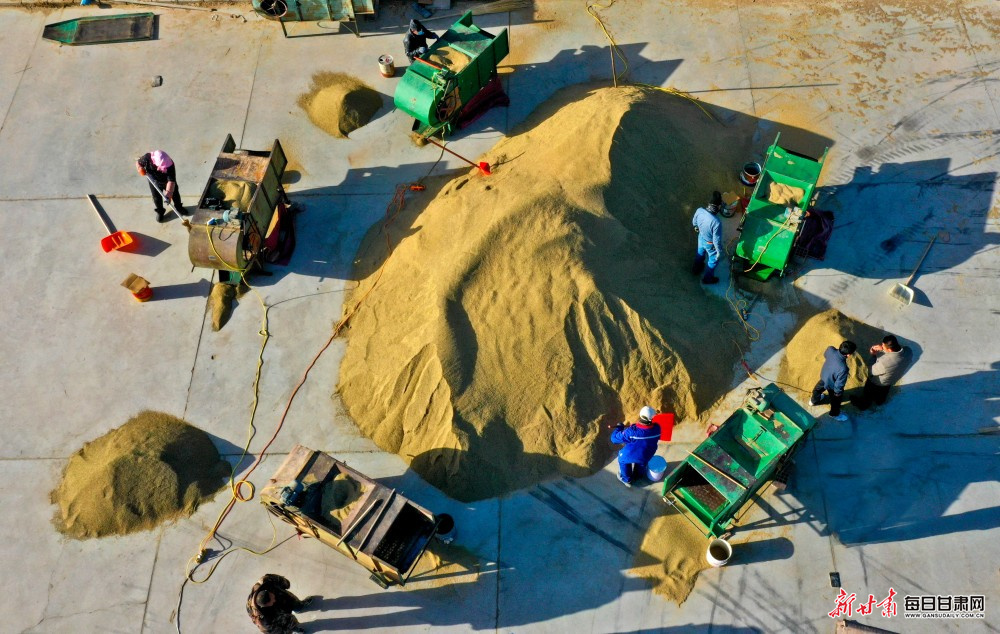 作为我国北方沙漠地区防沙治沙的核心植物,梭梭种子的采集关乎来年荒漠治理成效。连日来,工作人员抢抓种子成熟的关键期,有序开展采收工作:敲打枝条收集种子、小扫帚集中归拢、装袋转运至加工中心,随后经过晾晒、碾壳、除杂、风选、筛选、精选等多道严谨工序,再由专业人员检测发芽率,待进入干藏休眠期后,将用于春季播种育苗。此次预计采收的15000斤梭梭种子,将为新疆、内蒙古、甘肃等地20万亩“三北”工程荒漠治理提供种苗保障。