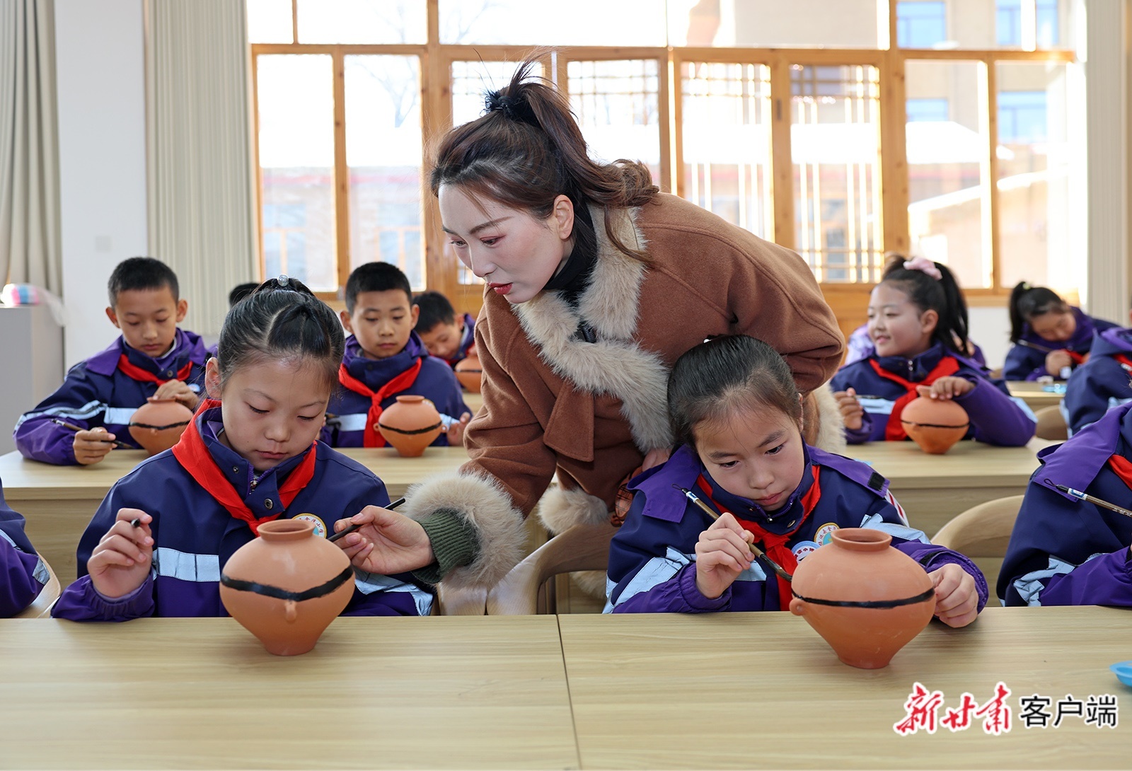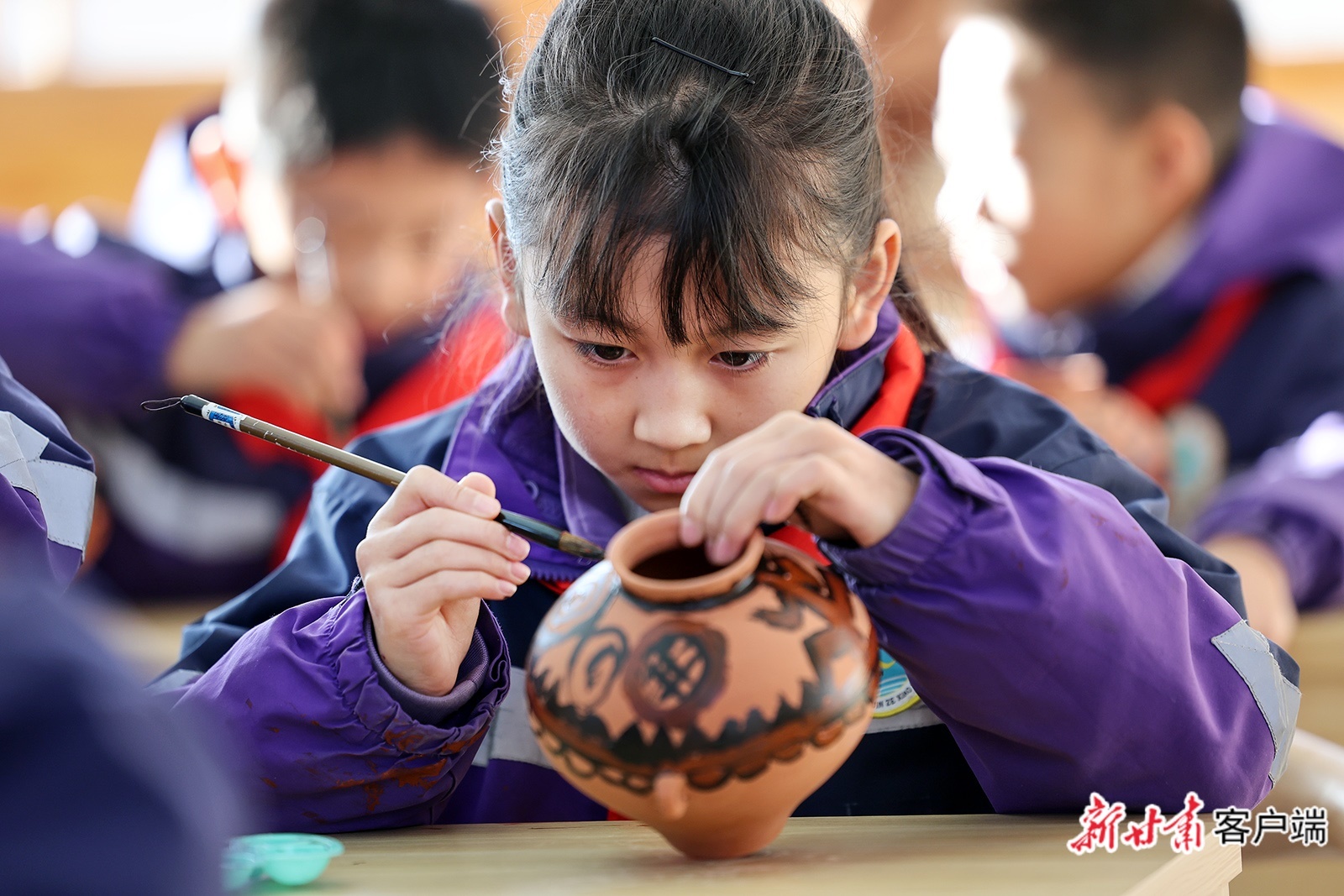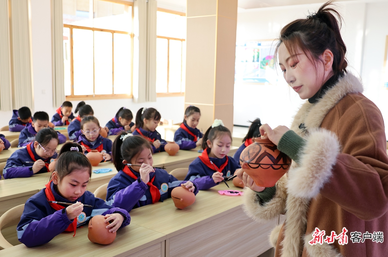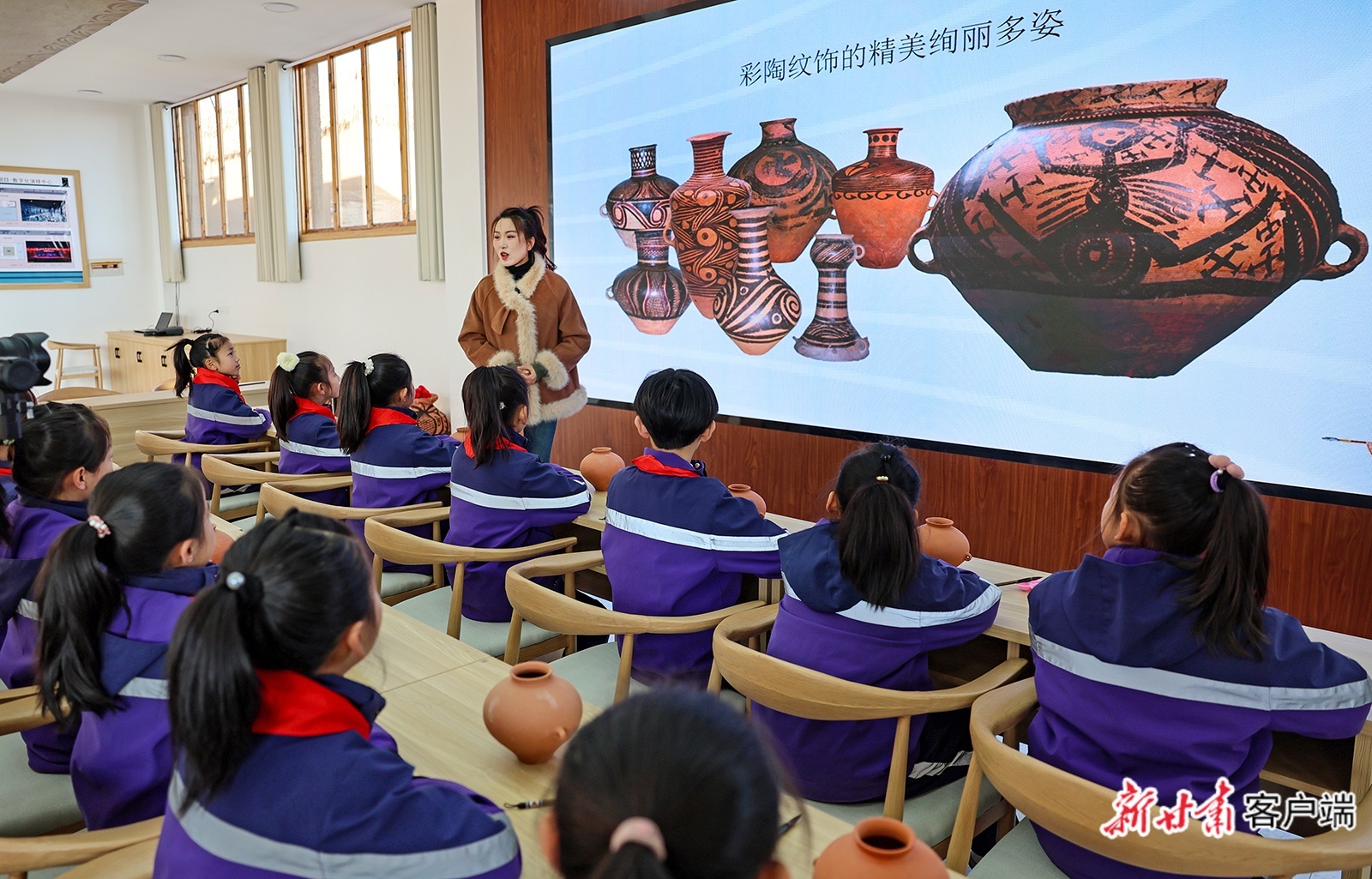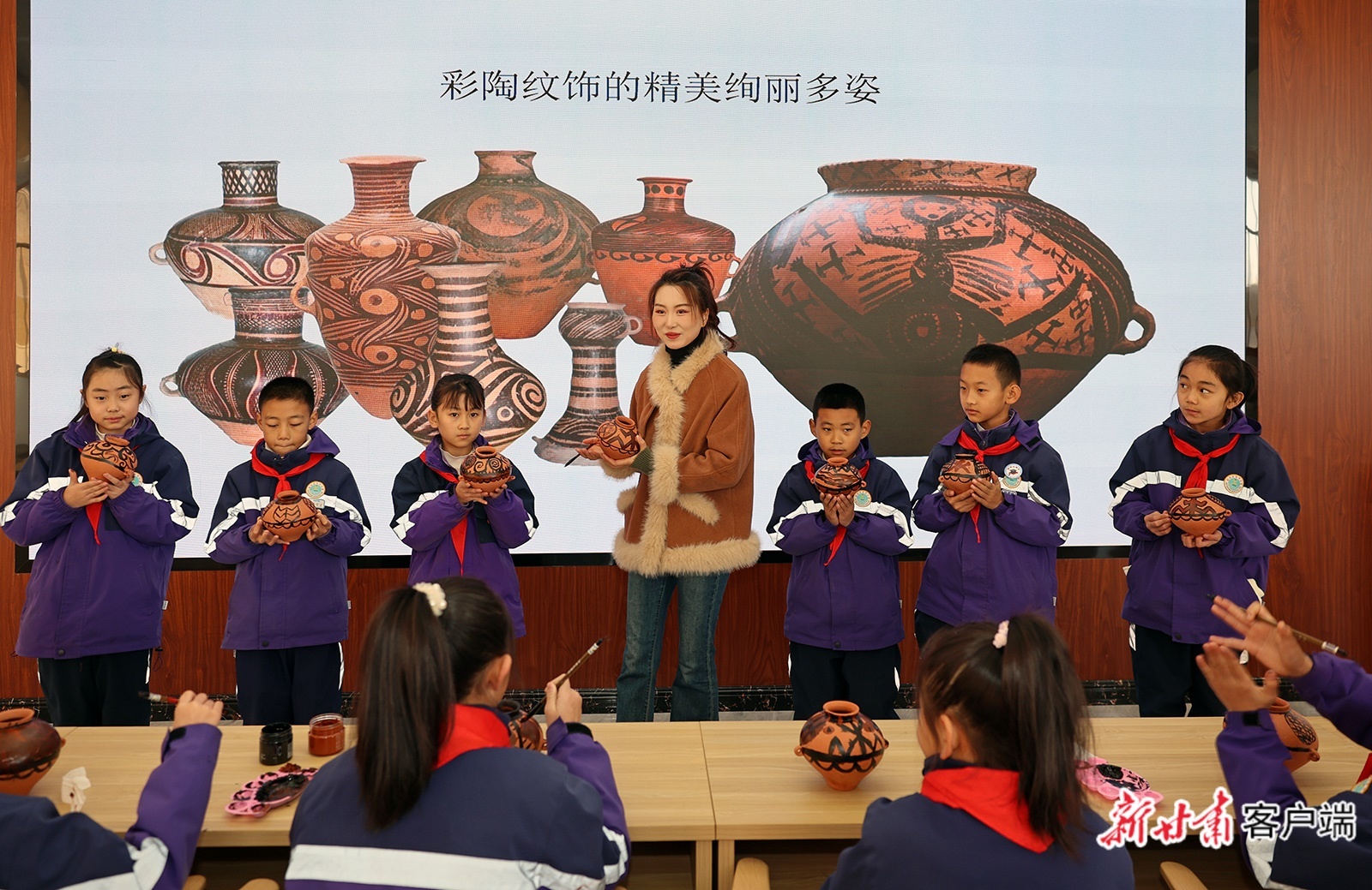 在这里,学生们在传承人的指导下揉捏陶土、绘制纹饰,大家近距离接触跨越5000年的彩陶非遗技艺,于体验中触摸历史脉络,在实践中提升综合素养。