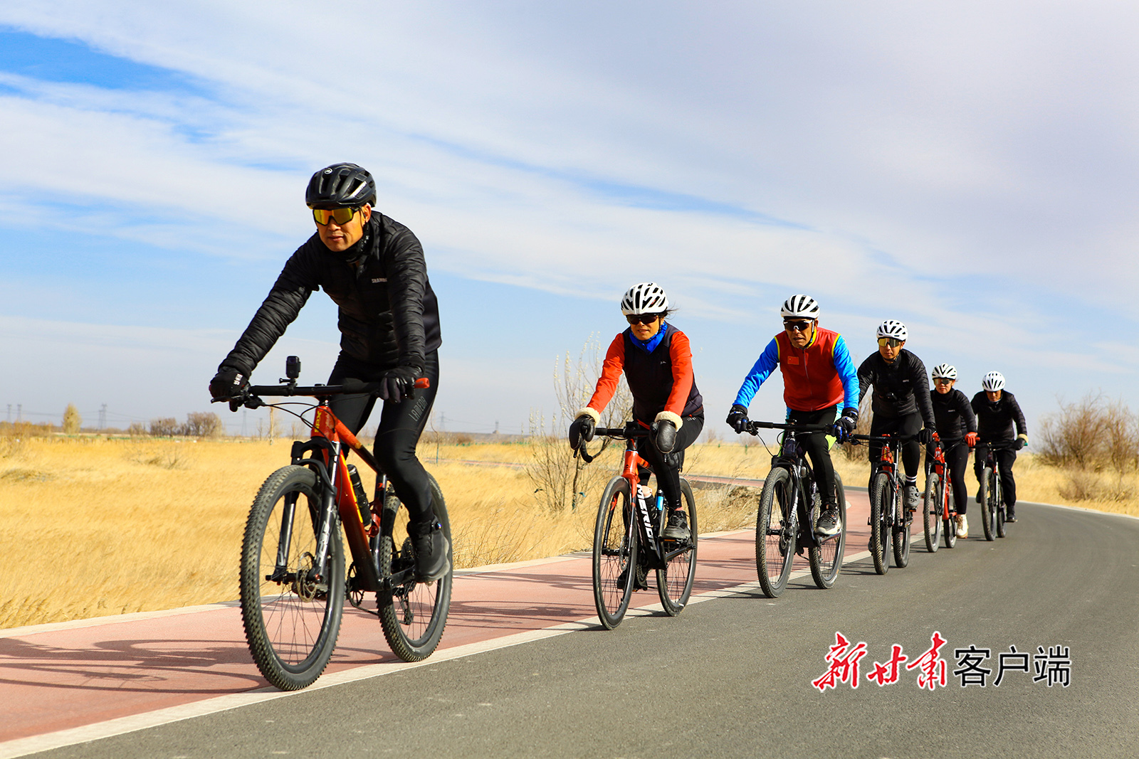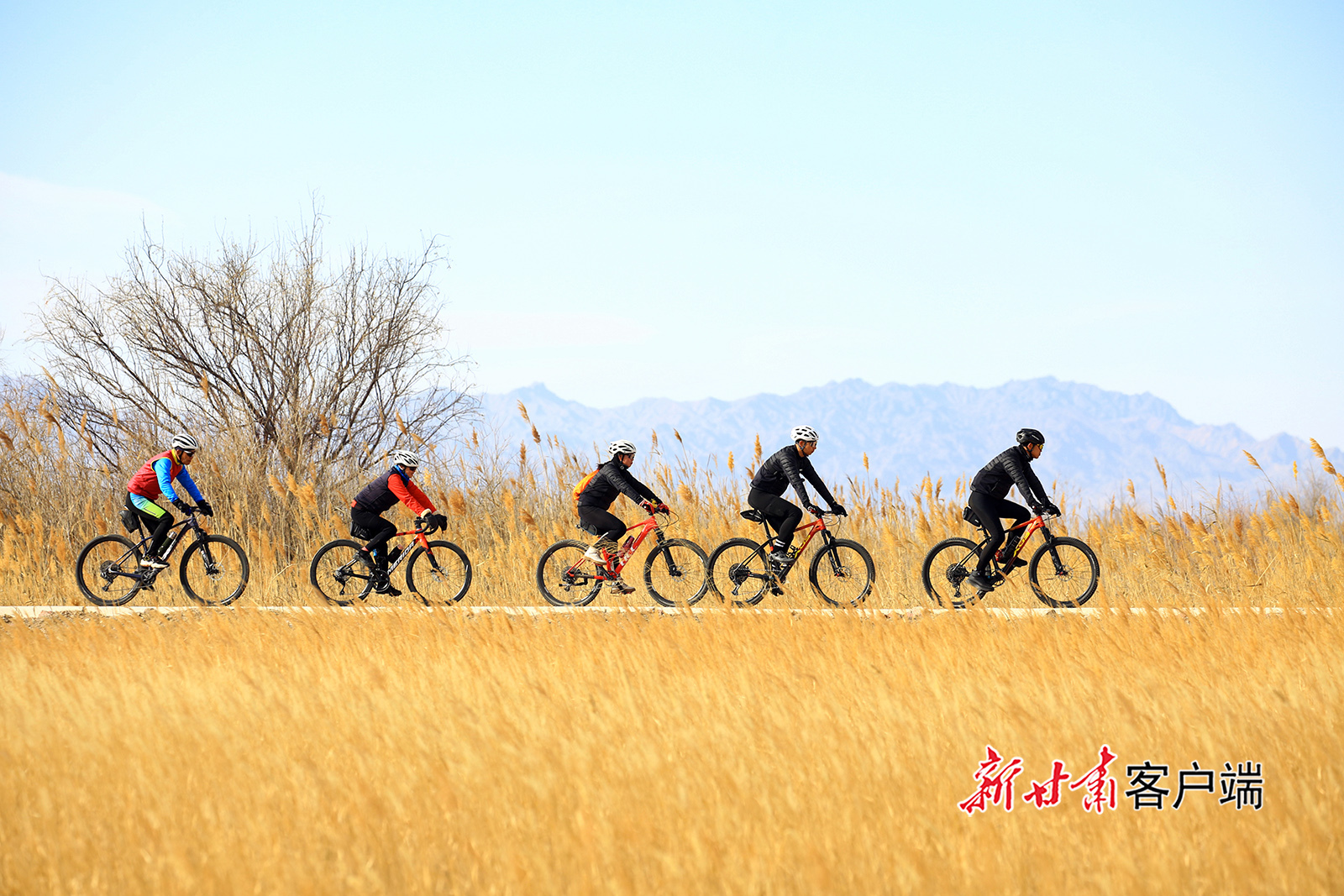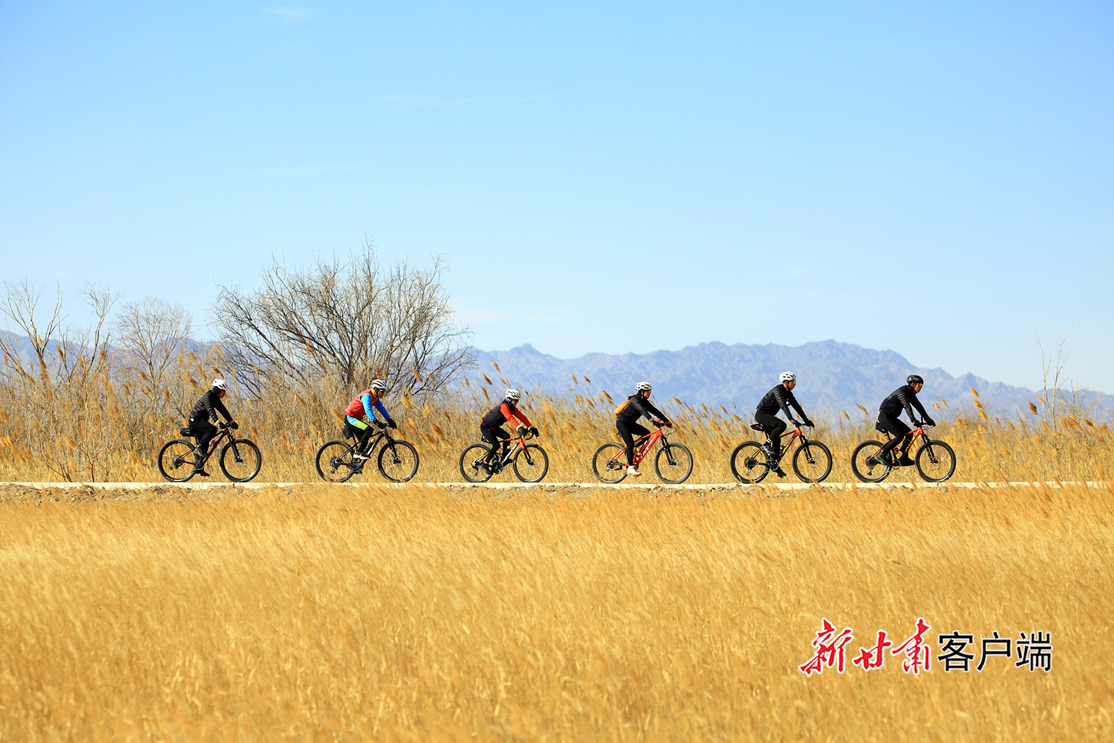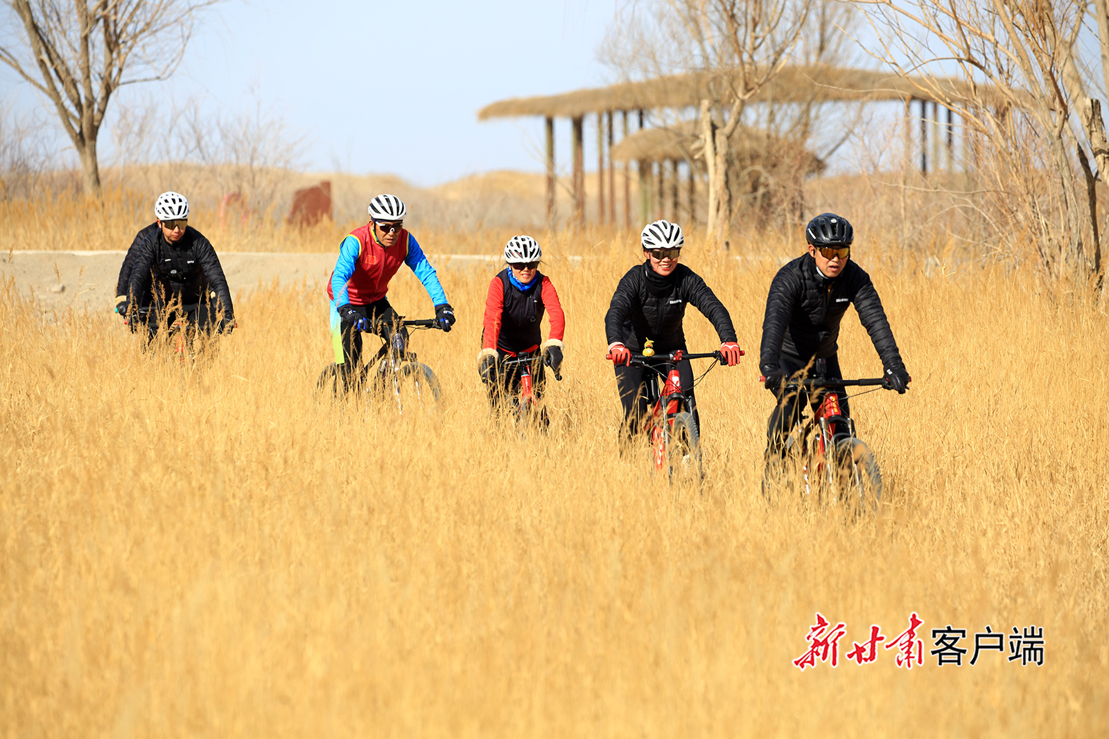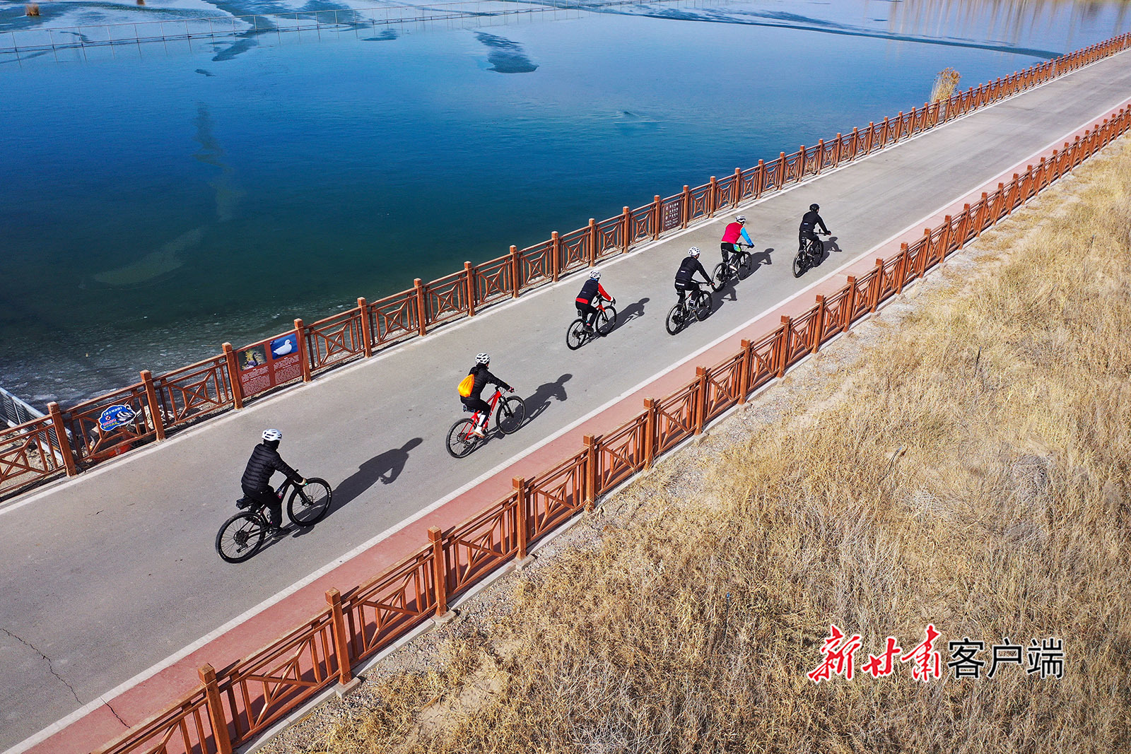 11月29日,嘉峪关市新城草湖国家湿地公园观光设施升级改造投入使用后,吸引众多骑行爱好者前来游玩,欣赏冬日美景,享受运动带来的快乐。