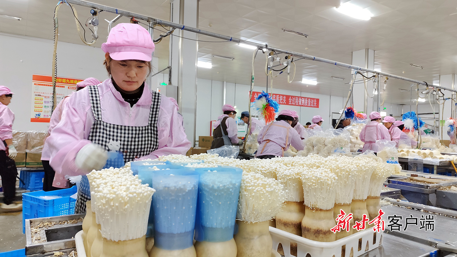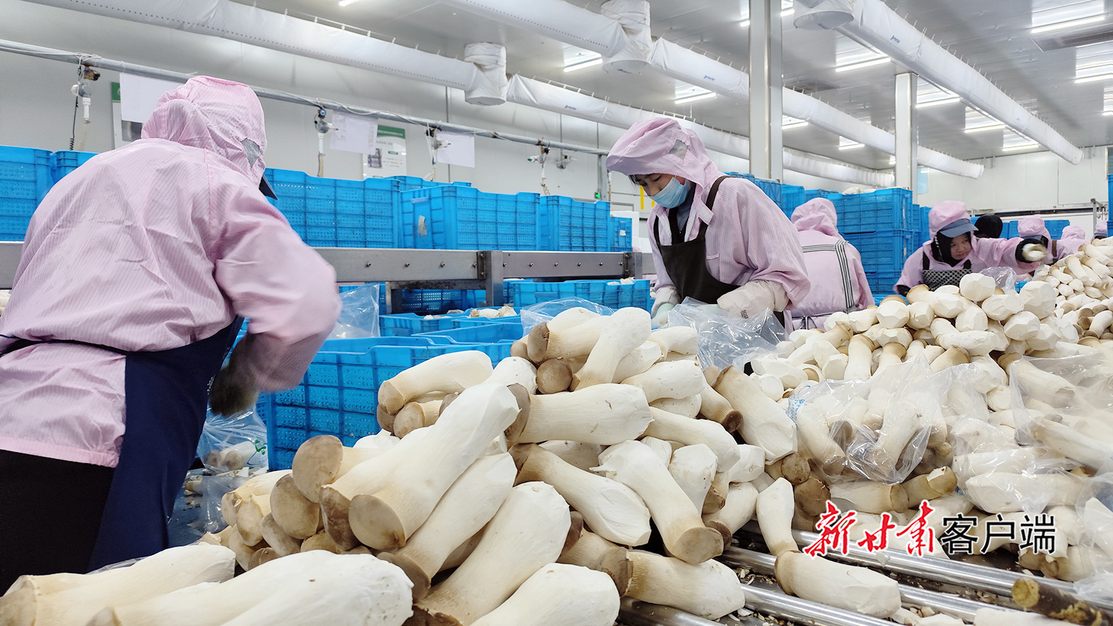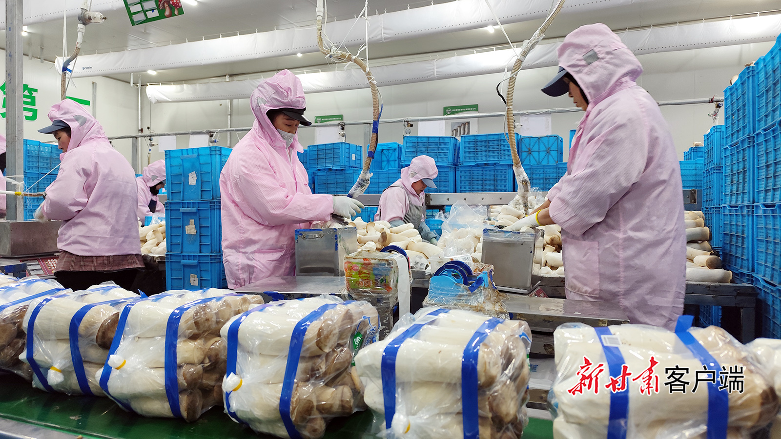 11月28日,临洮雪榕生物科技有限责任公司生产车间内,就近务工的群众正在对新采收的食用菌进行分拣和包装。目前,食用菌迎来销售旺季。当地群众在乡村就业工厂就近务工,做到挣钱、顾家一举两得。