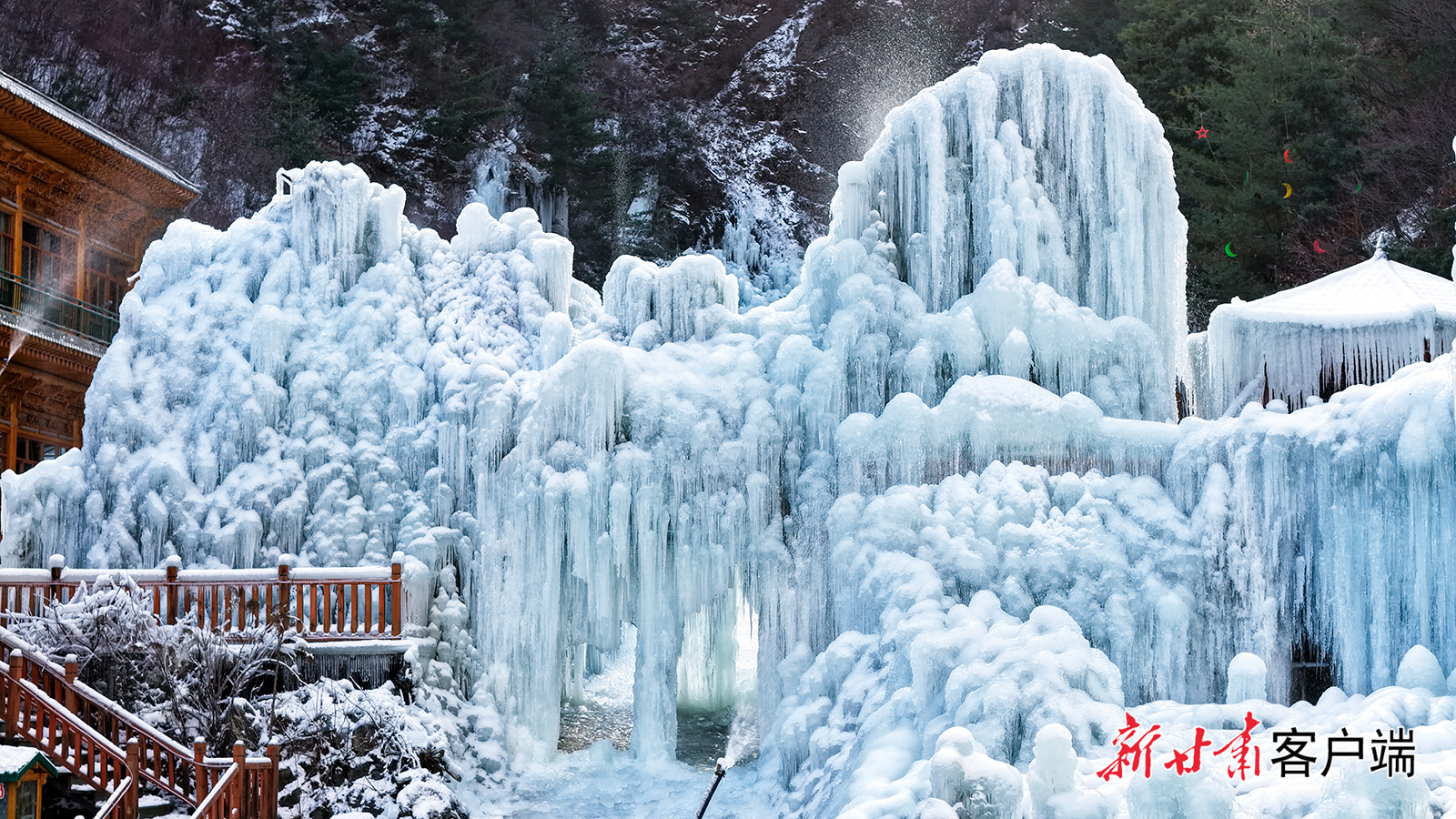 本次冰瀑制作覆盖太阳广场周边、碗架沟冰瀑、鸡腔子沟冰瀑三大核心区域,依托景区冬季零下低温的自然条件,采用“自然凝结+人工辅助”工艺,融合自然与人工造景,打造多层次、立体化的冰雪观赏效果。