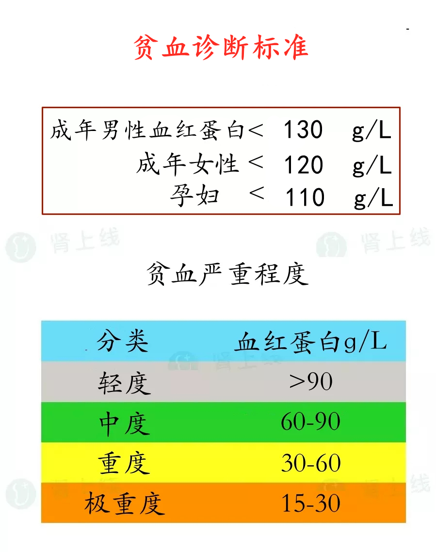 肾功能越差,贫血的发生率越高,程度也逐步加重。