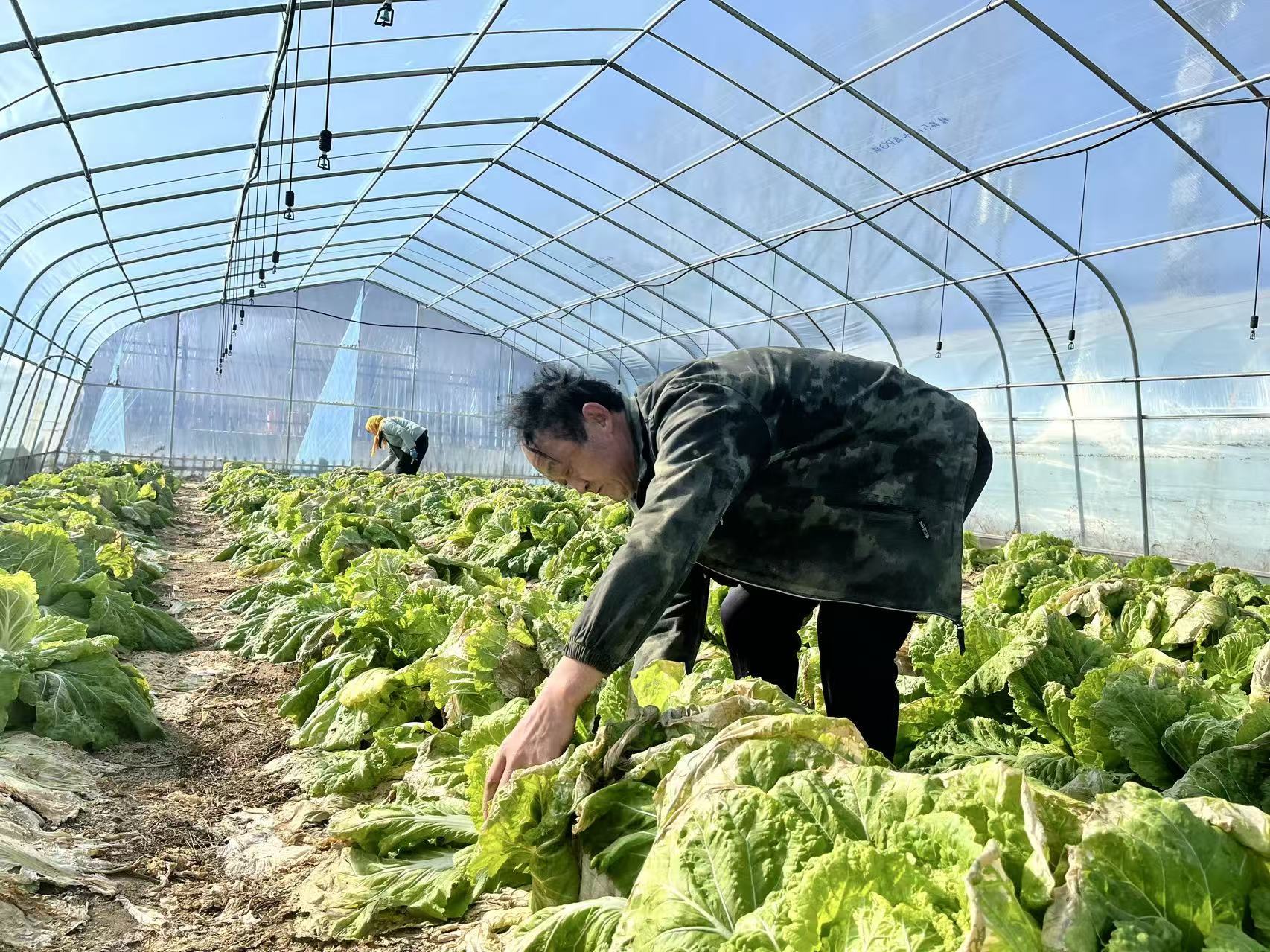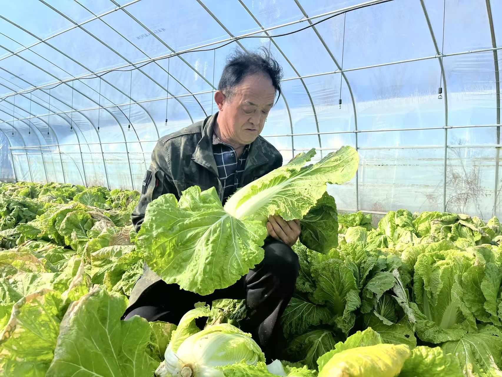 在杨宏科的蔬菜大棚里,记者看到,一垄垄白菜整齐排列,肥厚的叶片层层舒展,翠绿得发亮,仿佛一件件精美的玉器,每一棵都长得壮实饱满,透着丰收的喜人景象。