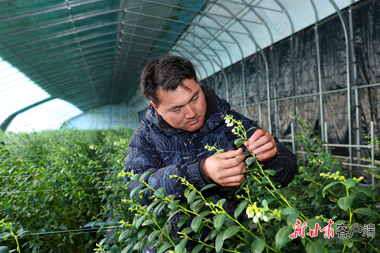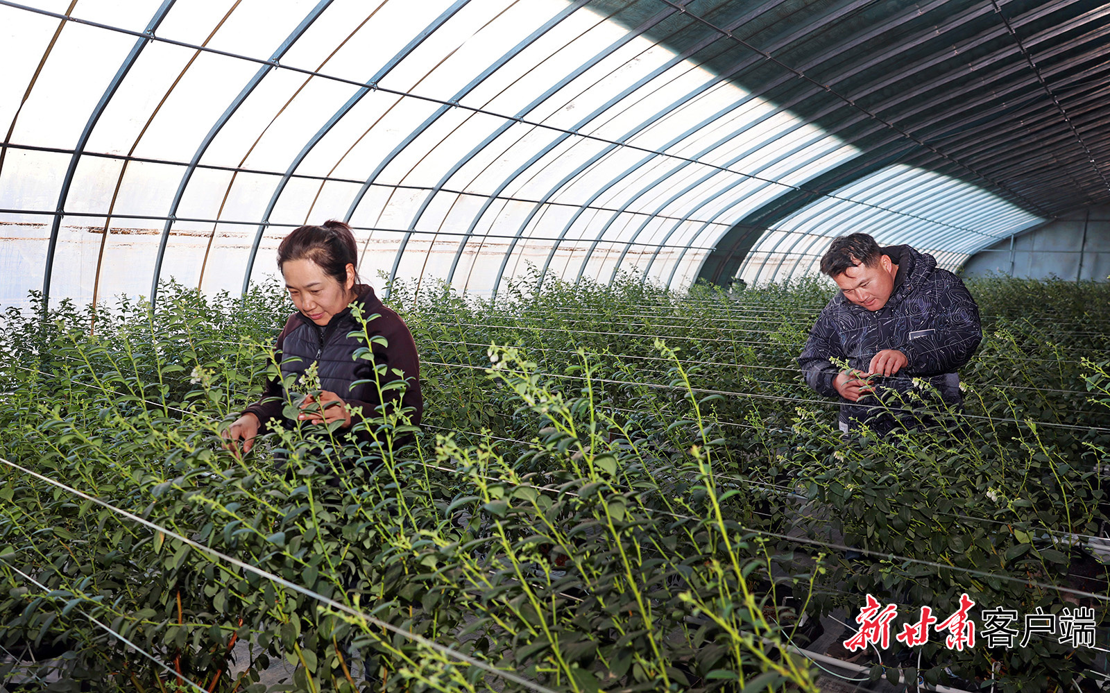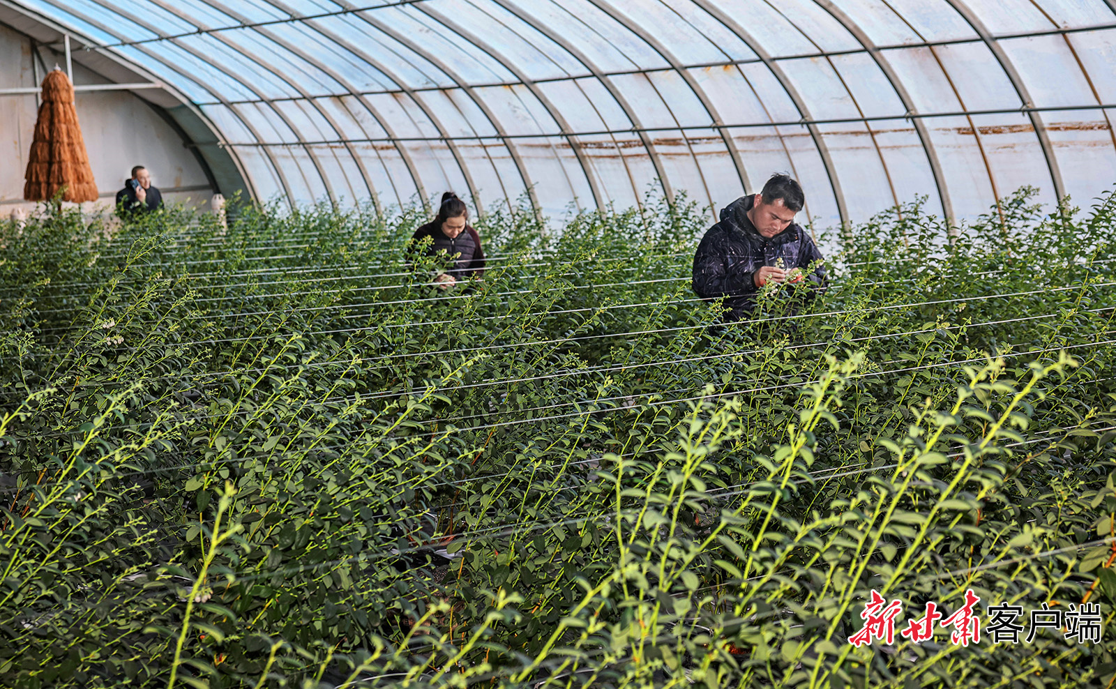在蓝莓种植园区的温室大棚里,陕西旭菁峰农业科技有限公司技术员贠天虎正带领工人查看蓝莓苗长势,细致开展修枝整形工作。“今年6月我们栽种了36棚蓝莓、约3万株。”贠天虎介绍道。经过修剪、摘心、疏枝等一系列精细化管理,这批蓝莓预计在春节前后集中上市,公司将凭借反季优势抢占市场,提升经济效益。