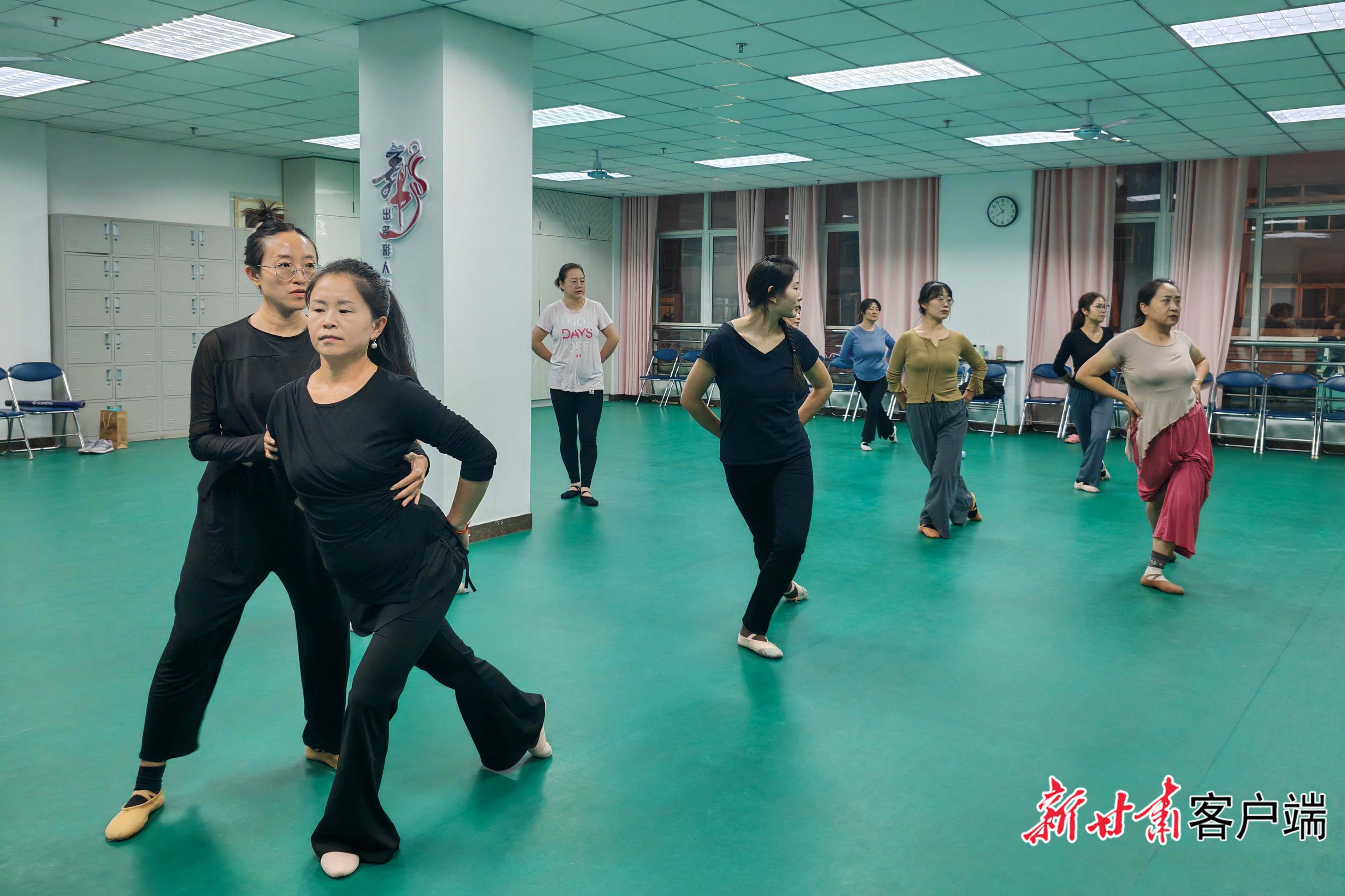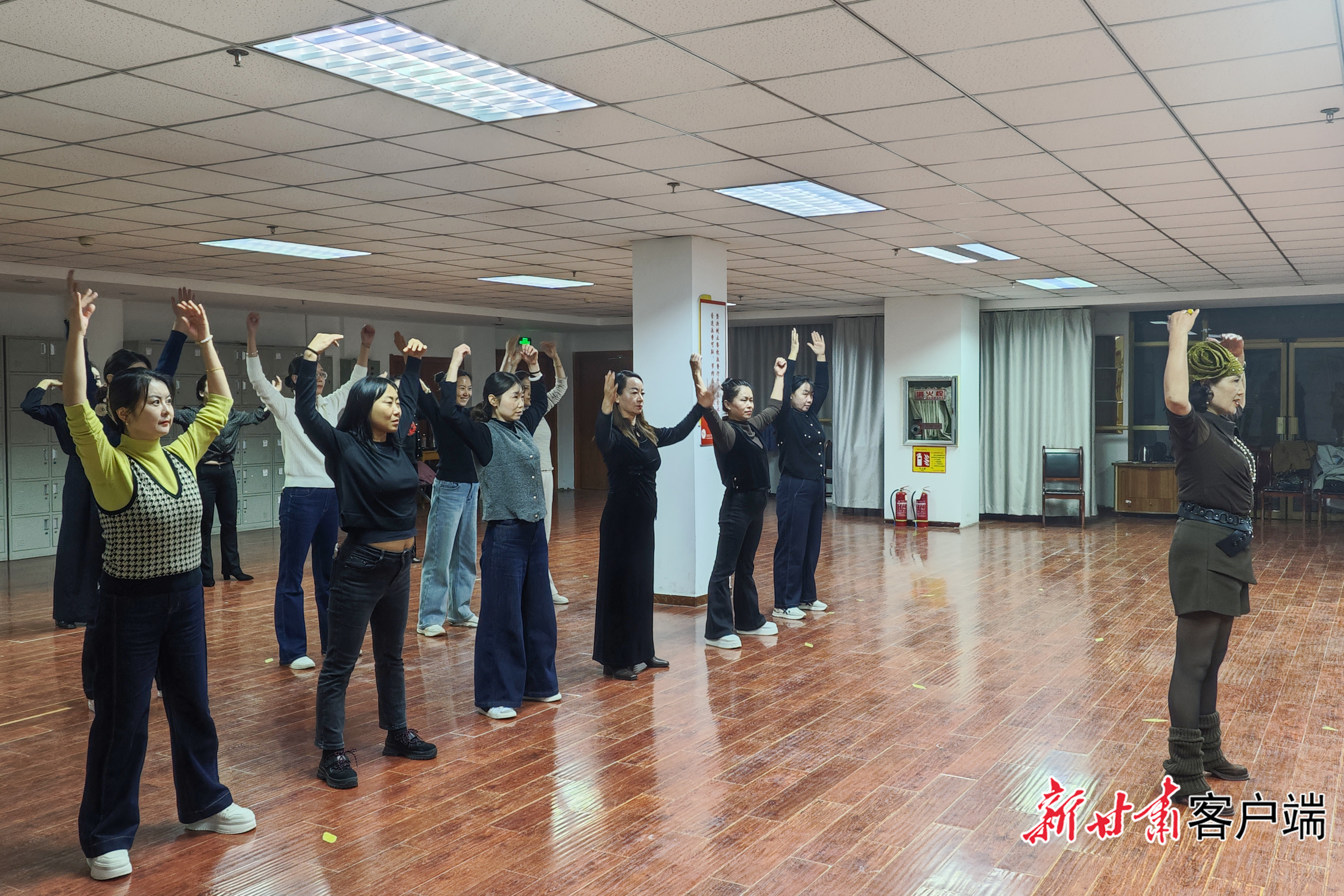 同一时段,206教室的中青年书法班座无虚席,20余名学员专注于笔墨之间。舞蹈班课堂同样人气高涨。每周五晚,忙碌一周的学员们齐聚排练室,老师结合学员基础拆解动作、细致示范,让零基础学员也能轻松跟上,大家在一呼一吸、一动一静间体验舞蹈带来的快乐,舒缓工作压力。