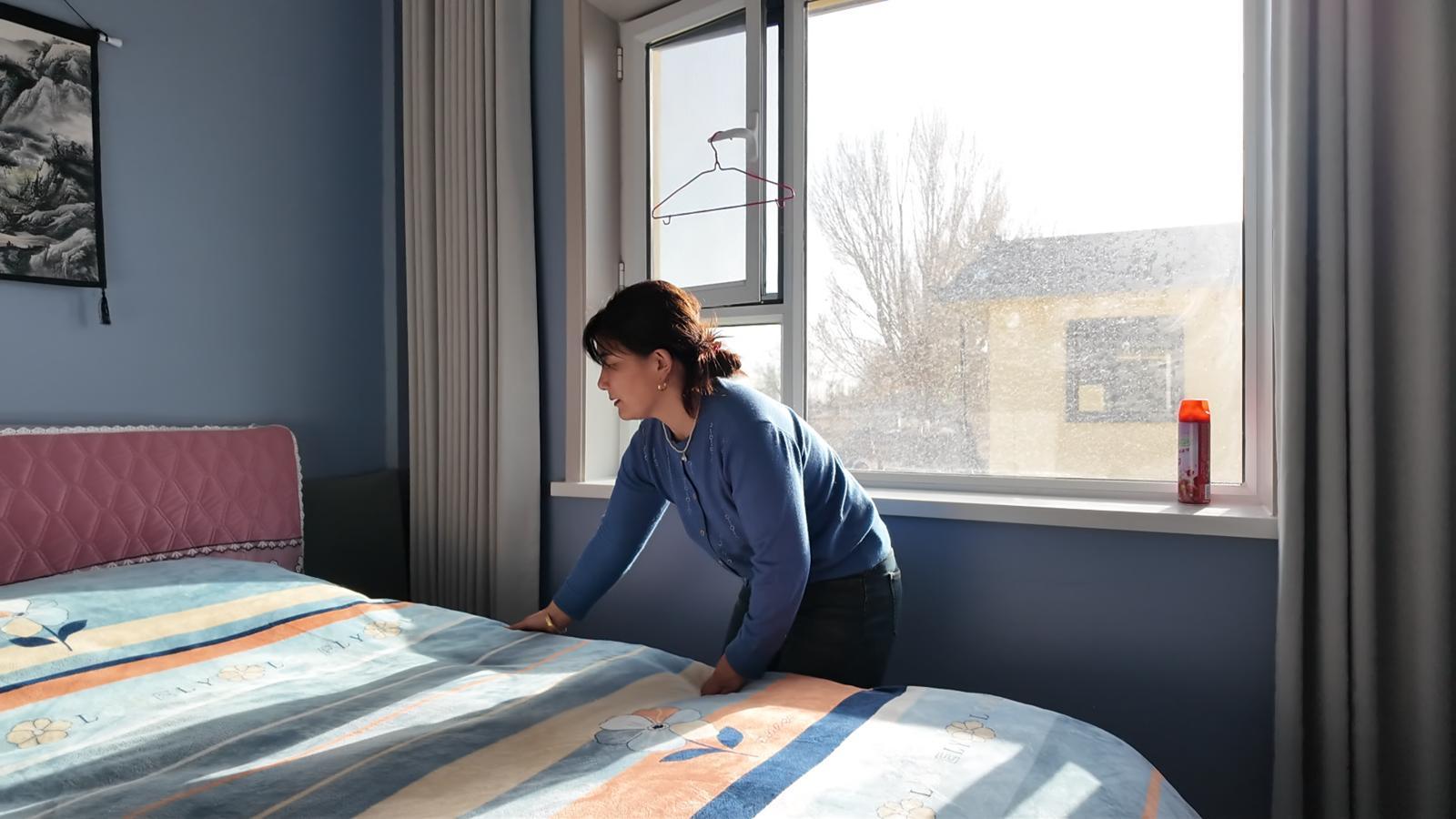 马登银的新家就在这里,80平方米的独栋小楼房在阳光下格外亮眼。推门而入,室内装修温馨雅致,新房宽敞明亮,现代化家具一应俱全。
