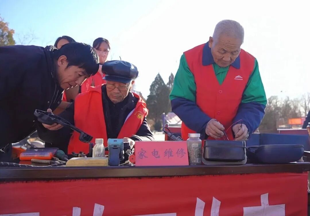 在家电维修展位旁,83岁的义务维修志愿者李世俊正专注地拆卸着烧水壶,他头发花白却精神矍铄,万用表、螺丝刀等工具在他的手中娴熟地切换,不多时便找到了故障。