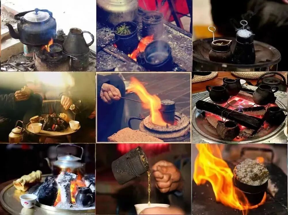 罐罐茶不追求茶艺表演的精致美感,也不追求茶叶的细嫩名贵,一个土火炉子、一个茶罐、一炉火,装半罐茶添满水置于火炉上煮,煮沸之后将茶汤倒入茶杯,每次只有一小口,茶汤仍留在罐中,继续添水煮。