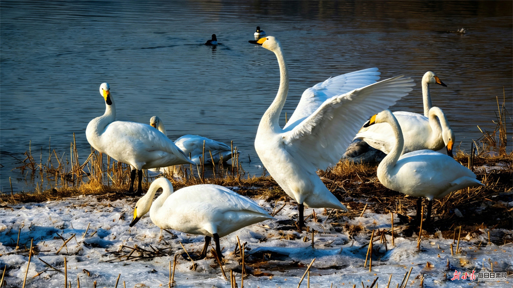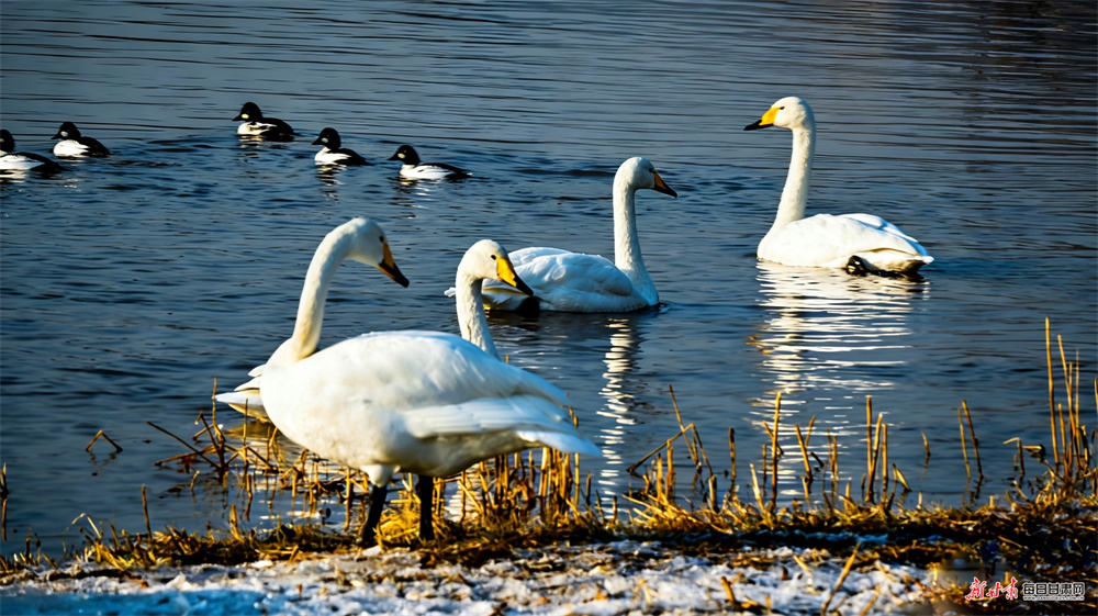 据了解,大天鹅是国家二级保护动物,有着严格的栖息地选择标准,其越冬期通常从每年10月中下旬延续至次年3月中旬。大天鹅组团来三河口湿地越冬,不仅填补了当地越冬候鸟种类的空白,更直观反映出近年来兰州对黄河流域生态保护修复的显著成效。随着湿地生态环境持续向好,这里正逐渐成为越来越多候鸟的“越冬乐园”。