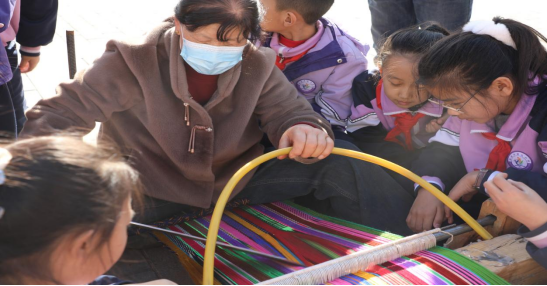 12月8日下午,金昌市第九小学校园内洋溢着浓厚的传统文化气息。以“共织美好未来”为主题的省级非物质文化遗产项目——金川织褐子技艺现场展示宣传推广暨非遗进校园活动在此生动开展。