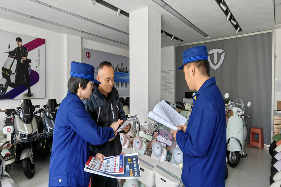 针对2025年12月实施的“史上最严”新国标,灵台县市场监管局联合公安、消防救援大队创新宣教形式。深入部分乡镇和住宅小区,宣传法律法规,播放火灾警示片,物业讲解“一车一池一充一码”机制;商户门店内,执法人员示范辨别合规车型,“拒绝改装”标语醒目。县消防救援大队进一步聚焦销售源头,深入爱玛、小刀等电动车销售网点,结合国内电动车电池热失控起火案例,解读新国标核心要求,同时现场张贴海报40余份,发放彩页标注“禁楼道停放、禁私拉电线、禁入户充电”准则。
