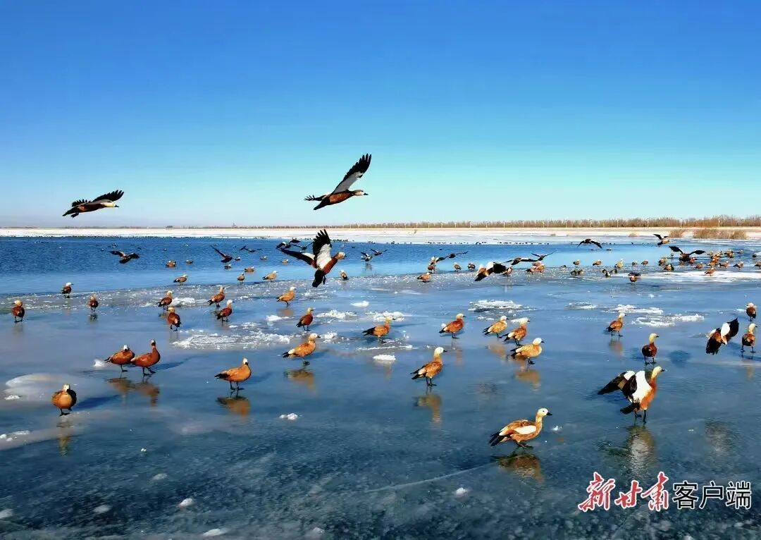上午赏冬春生态奇观,看红崖山水库雪后雾凇覆树梢,观候鸟在冰面嬉戏。