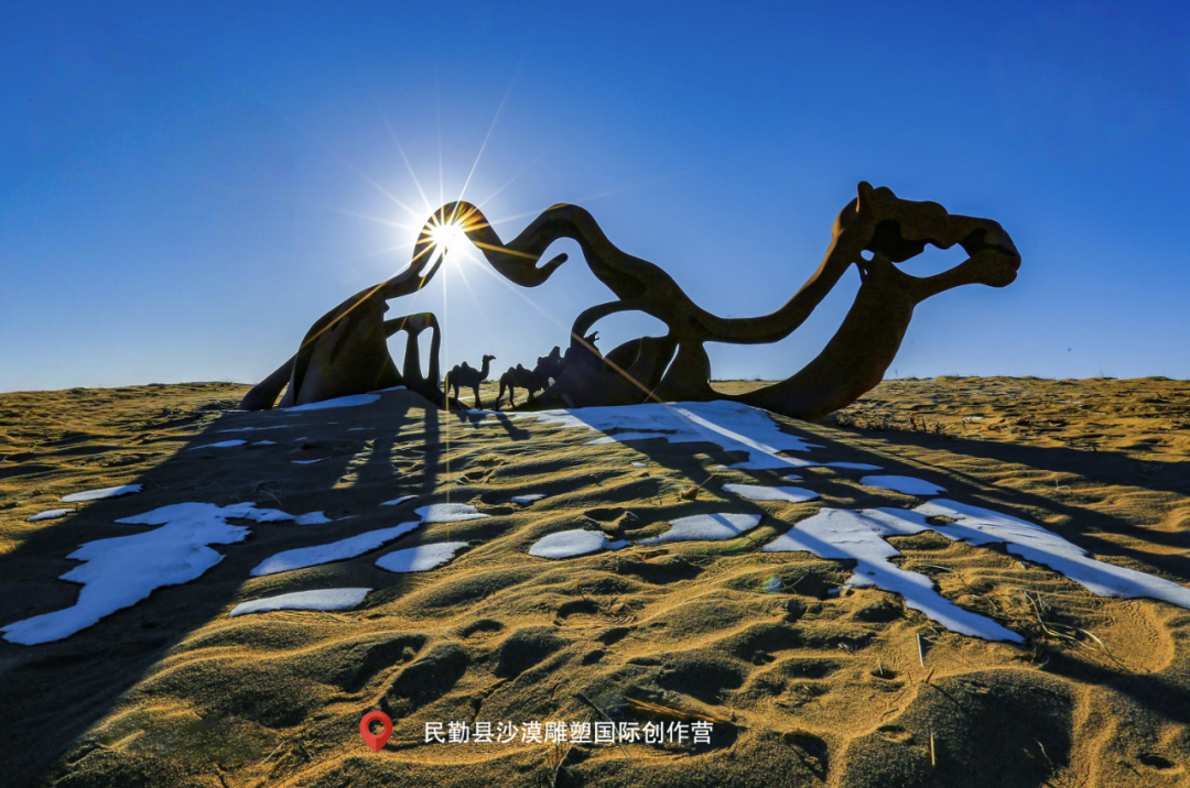 下午打卡沙漠特色:沙漠雕塑创作营看132件艺术作品与大漠白雪相映,夜晚在摘星小镇用全天域望远镜观银河,体验“手可摘星”的浪漫。