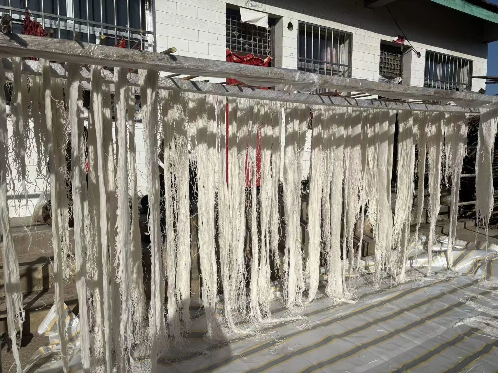 寒冬时节,华亭市马峡镇的农家院里一派忙碌景象,一排排晶莹剔透的粉条在阳光下舒展晾晒,宛如冬日里的“银丝”画卷,成为乡村最鲜活的冬日印记。眼下正是手工粉条制作的黄金期,村民们陆续开启“冬忙模式”,选料、磨浆、漏粉、晾晒,用祖辈传下来的传统工艺,勾勒出乡村冬日里的烟火气息。